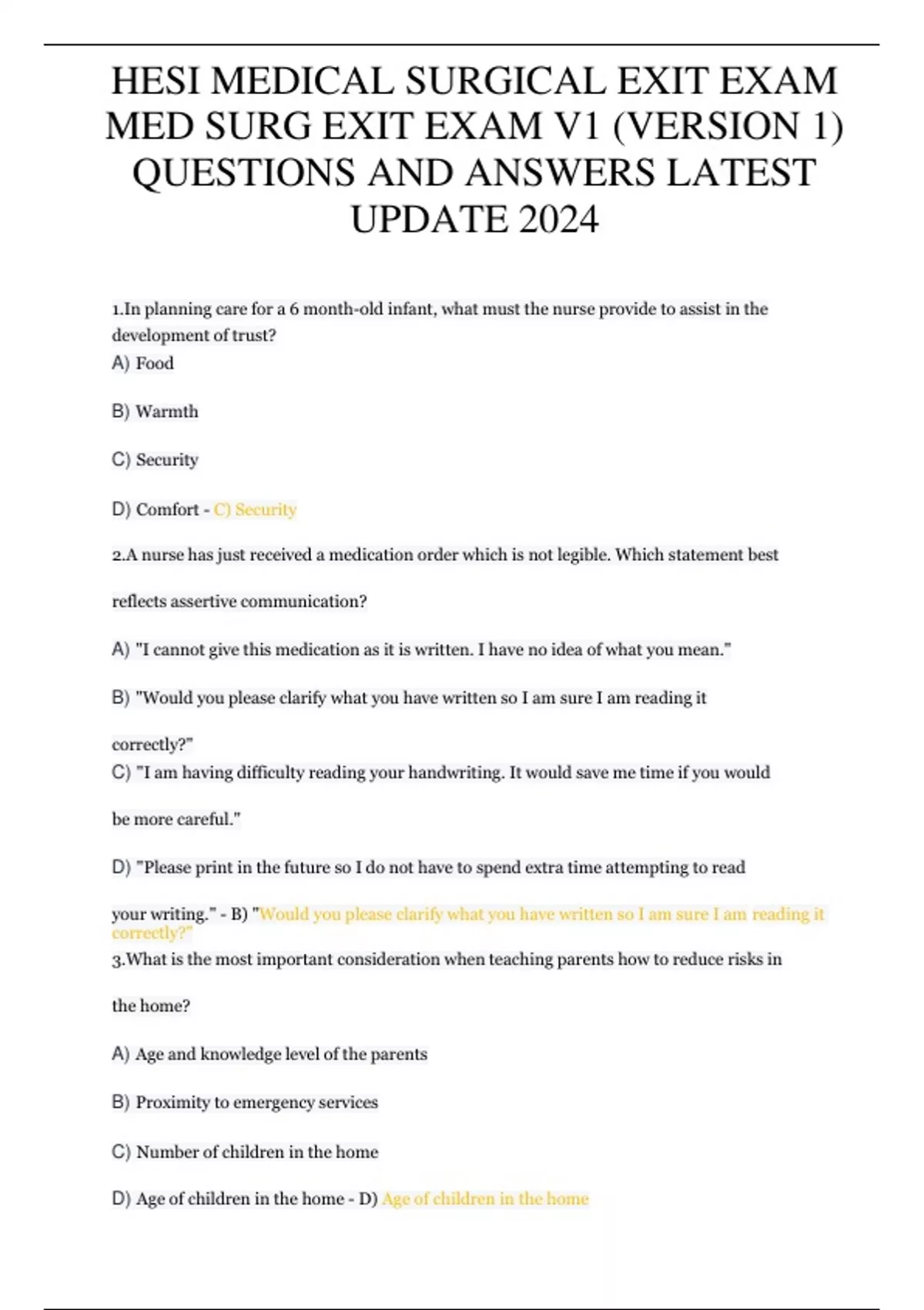 HESI MEDICAL SURGICAL EXIT EXAM MED SURG EXIT EXAM V1 (VERSION 1) QUESTIONS AND ANSWERS LATEST UPDATE 2024