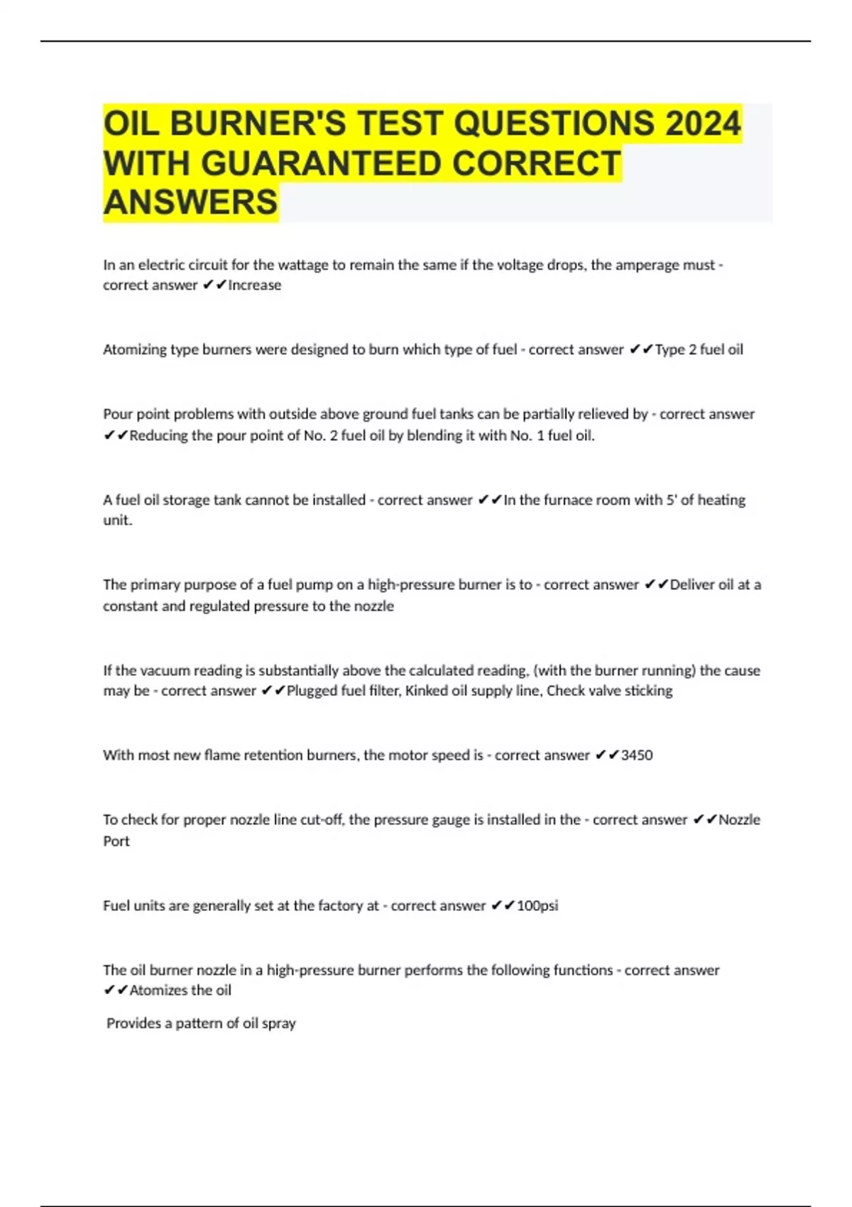 OIL BURNER'S TEST QUESTIONS 2024 WITH GUARANTEED CORRECT ANSWERS