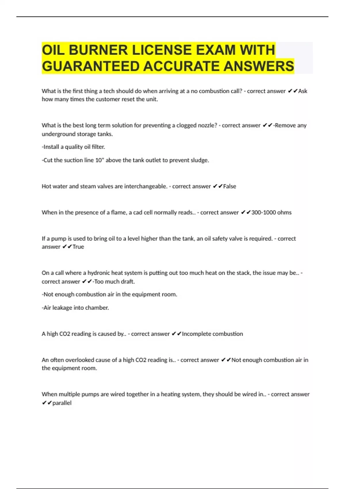 OIL BURNER LICENSE EXAM WITH GUARANTEED ACCURATE ANSWERS