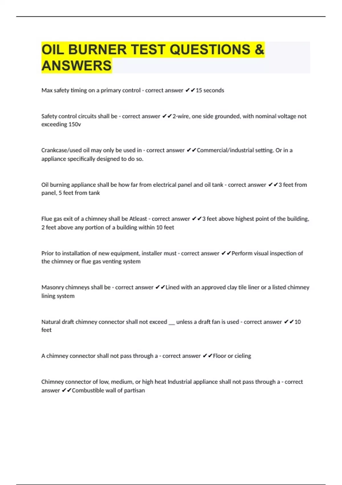 oil burners test questions wih guaranteed correct