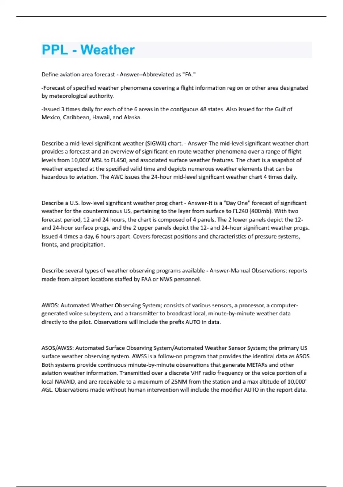 PPL - Weather Questions With Correct Answers!!