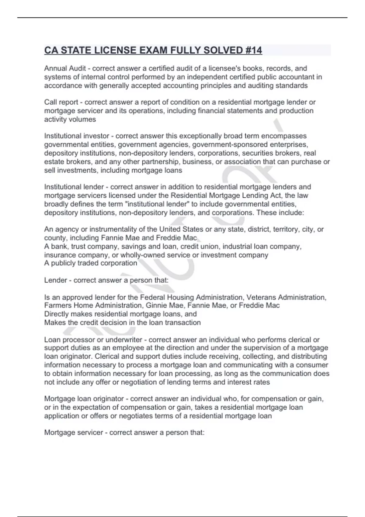 CA STATE LICENSE EXAM FULLY SOLVED #14