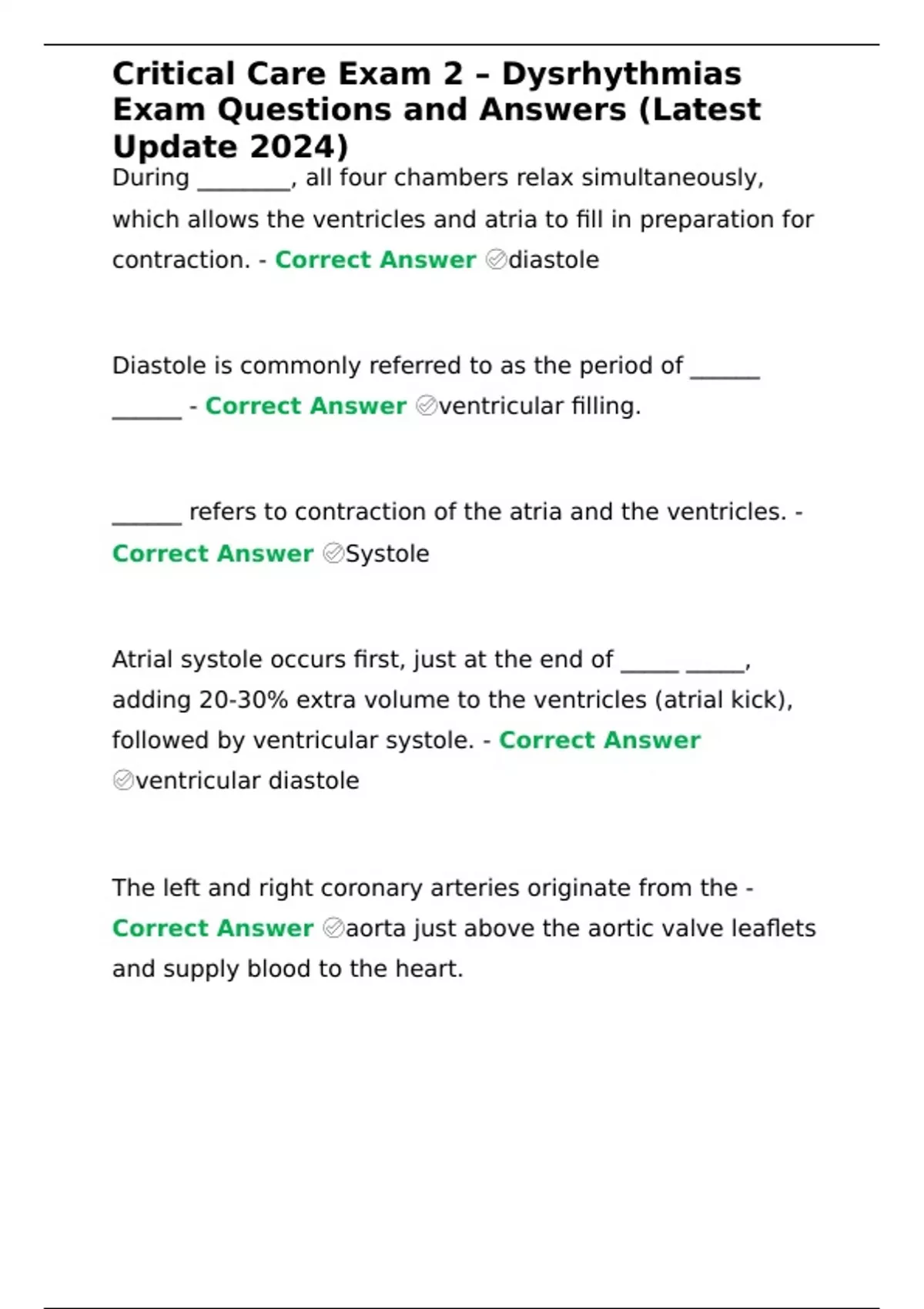 Critical Care Exam 2 – Dysrhythmias Exam Questions and Answers (Latest Update 2024)