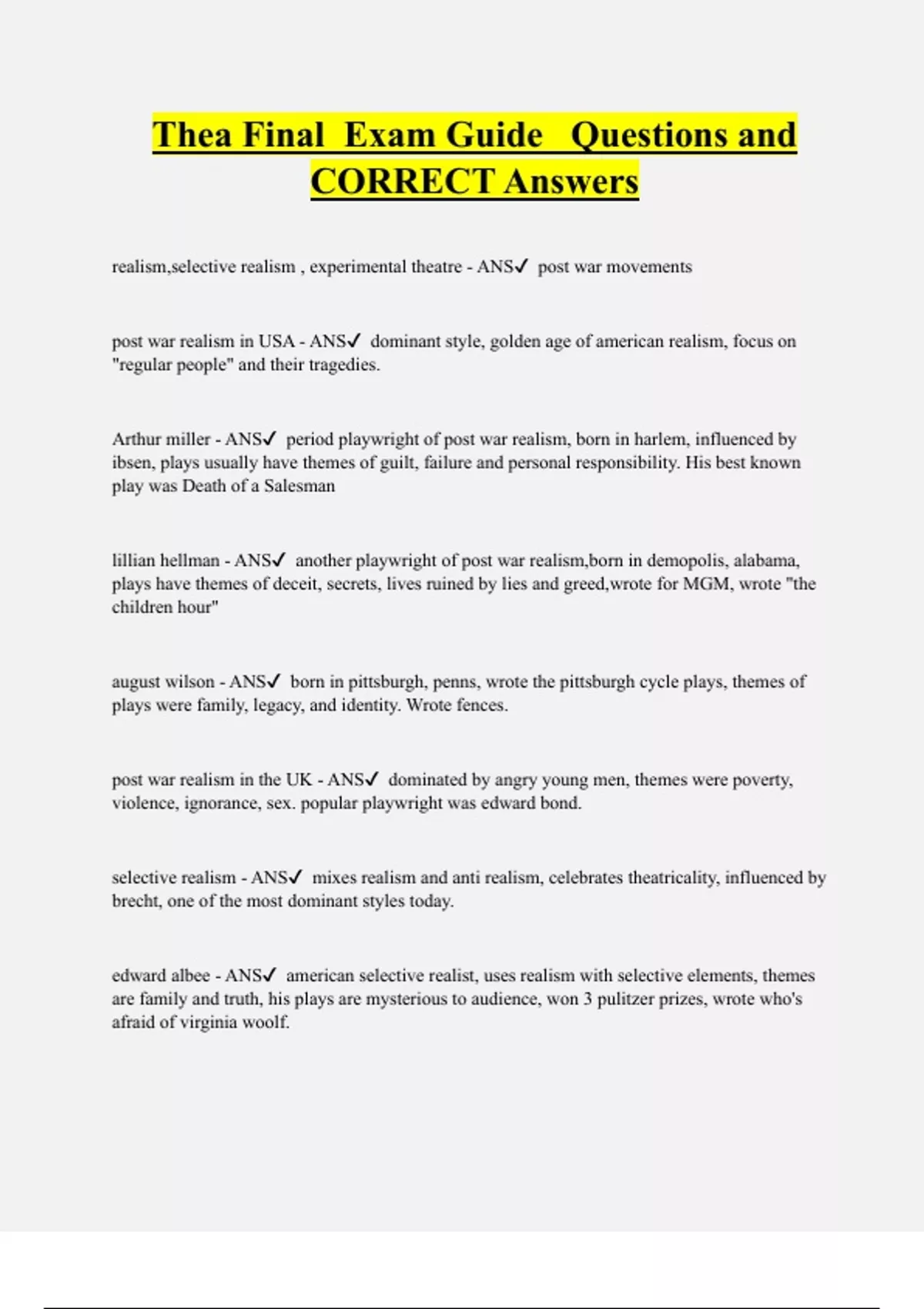 realism,selective realism , experimental theatre - ANS post war movements post war realism in USA - ANS dominant style, golden age of american realism, focus on "regular people" and their tragedies. Arthur miller - ANS period playwright of post war realism, born in harlem, influenced by ibsen, plays usually have themes of guilt, failure and personal responsibility. His best known play was Death of a Salesman