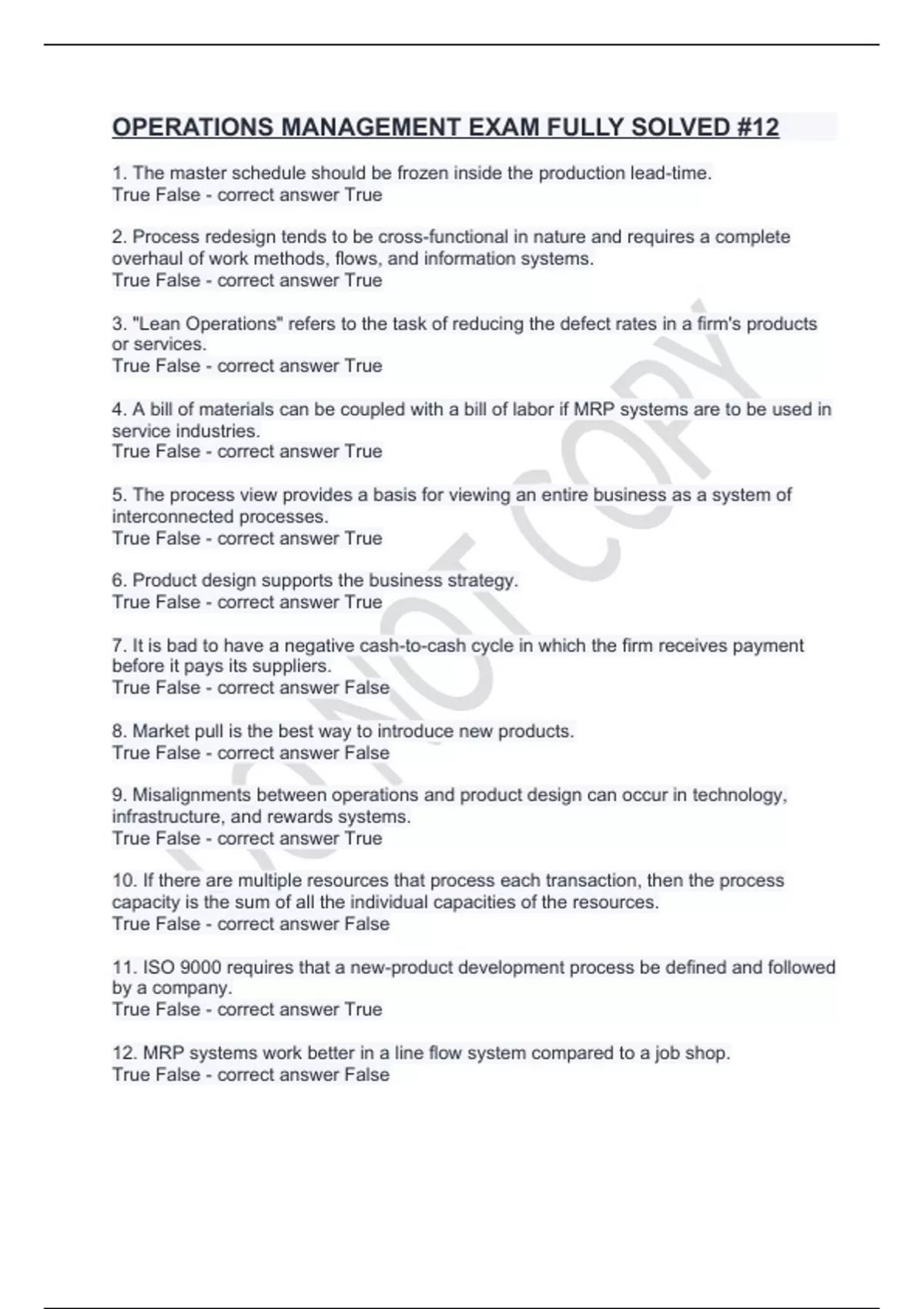 OPERATIONS MANAGEMENT EXAM FULLY SOLVED #12