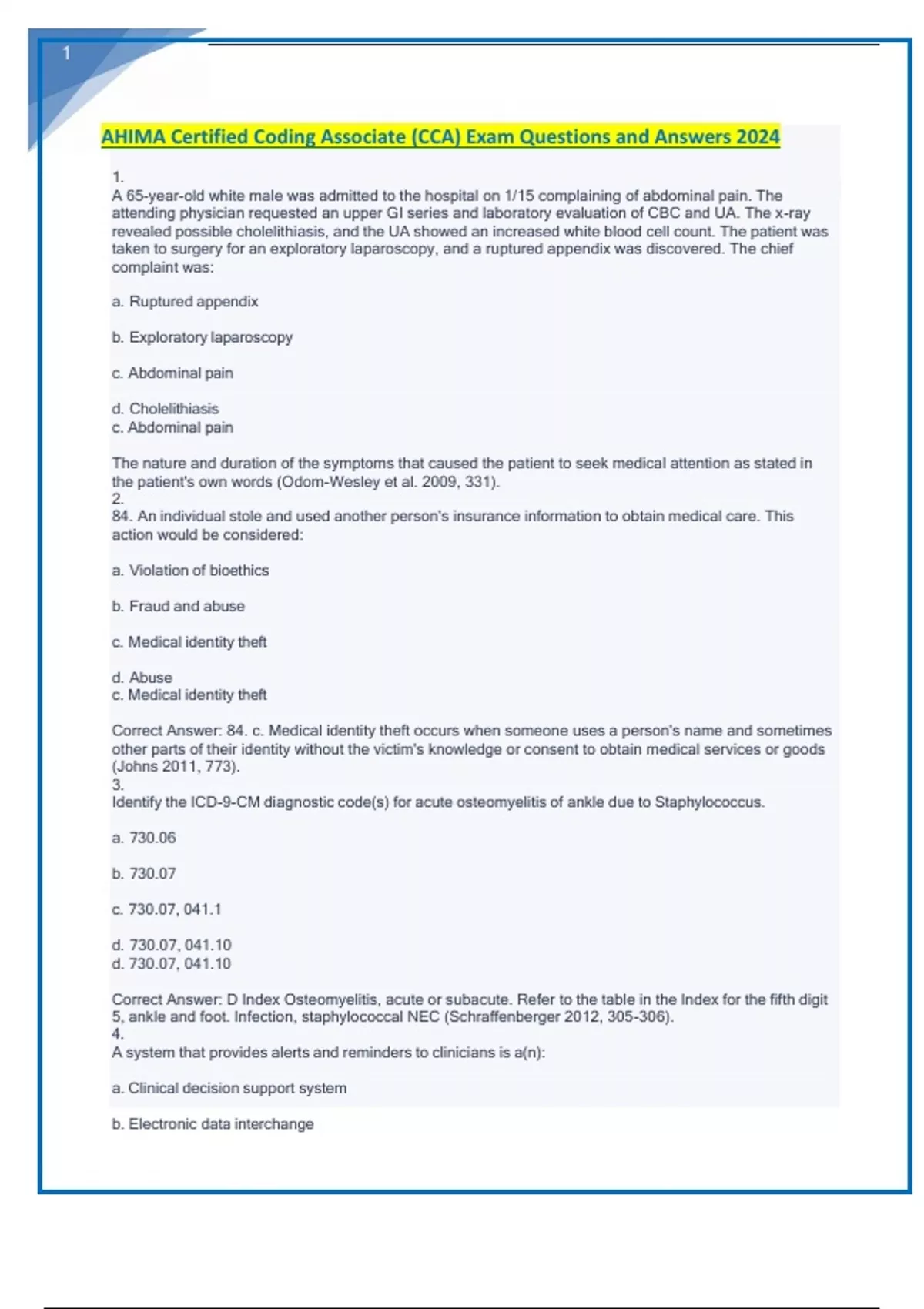AHIMA Certified Coding Associate (CCA) Exam Questions and Answers 2024