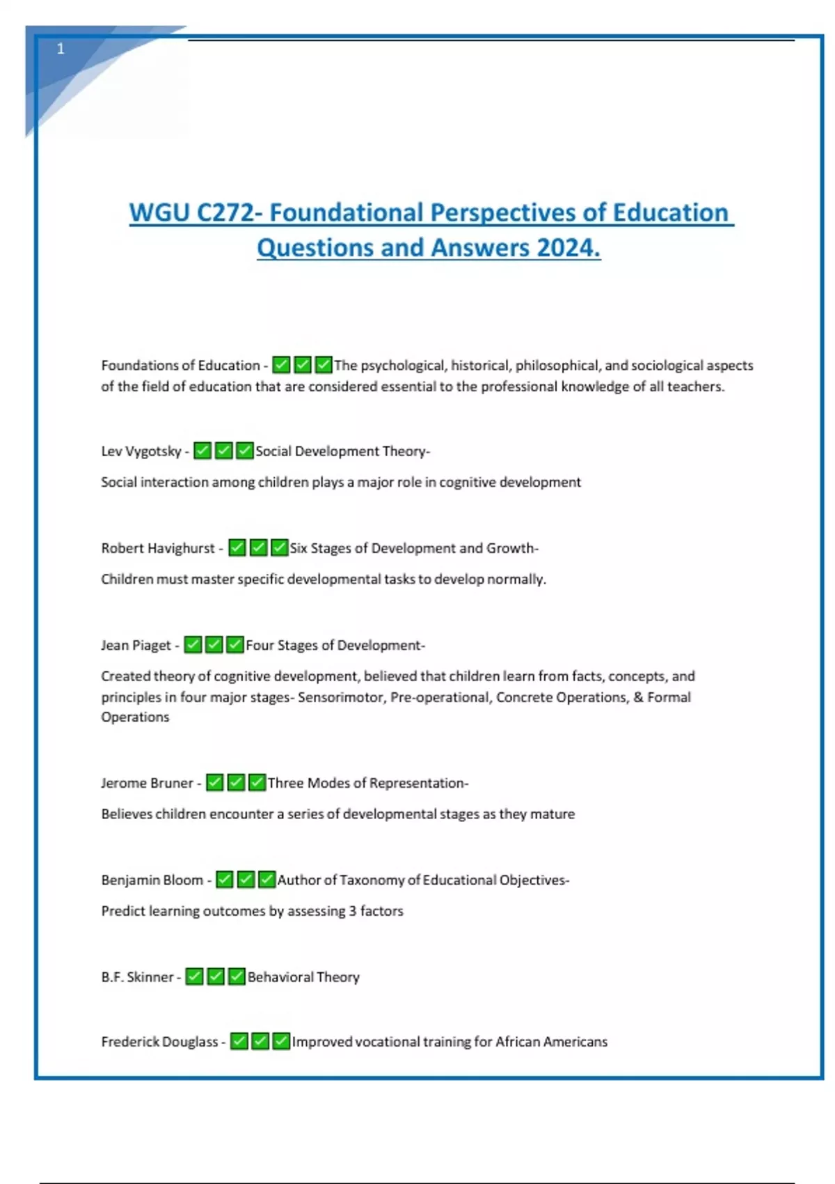 WGU C272- Foundational Perspectives of Education Questions and Answers 2024.