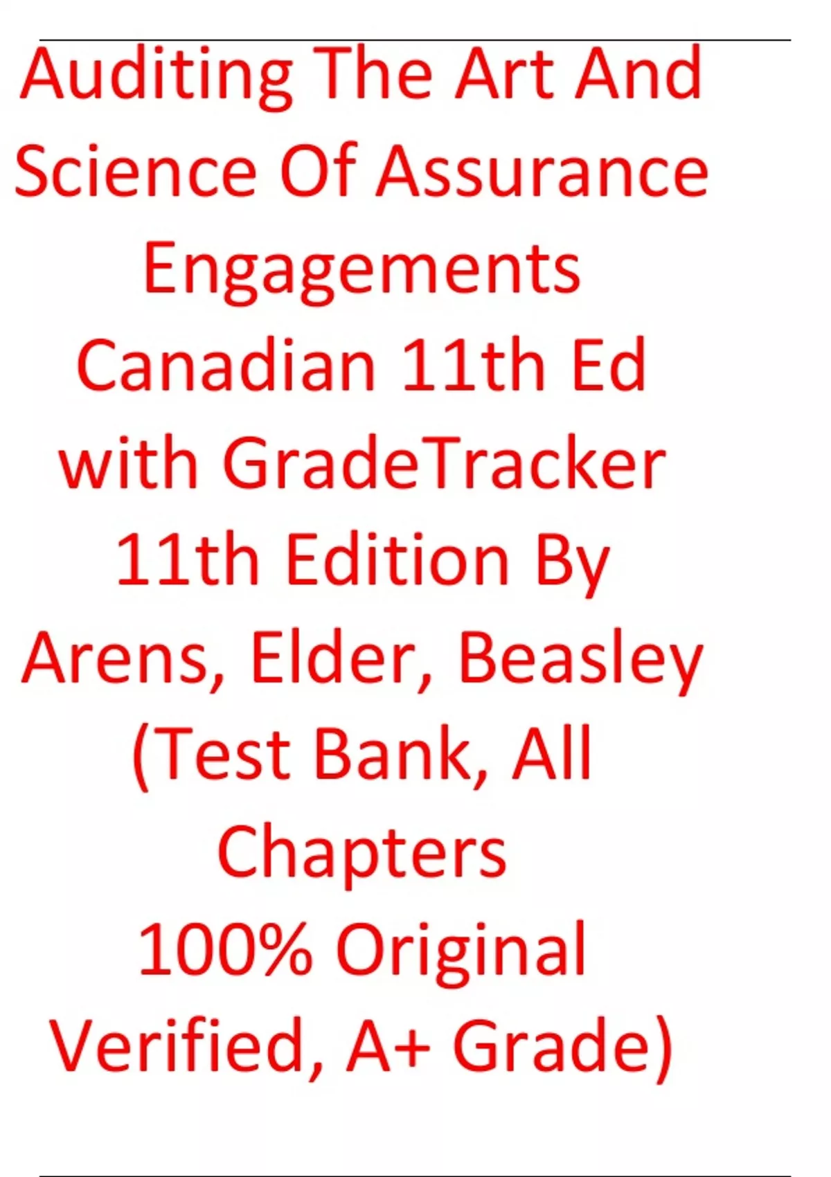 Test Bank For Auditing The Art and Science Of Assurance Engagements Canadian 11th Ed with GradeTracker 11th Edition By Arens Elder Beasley