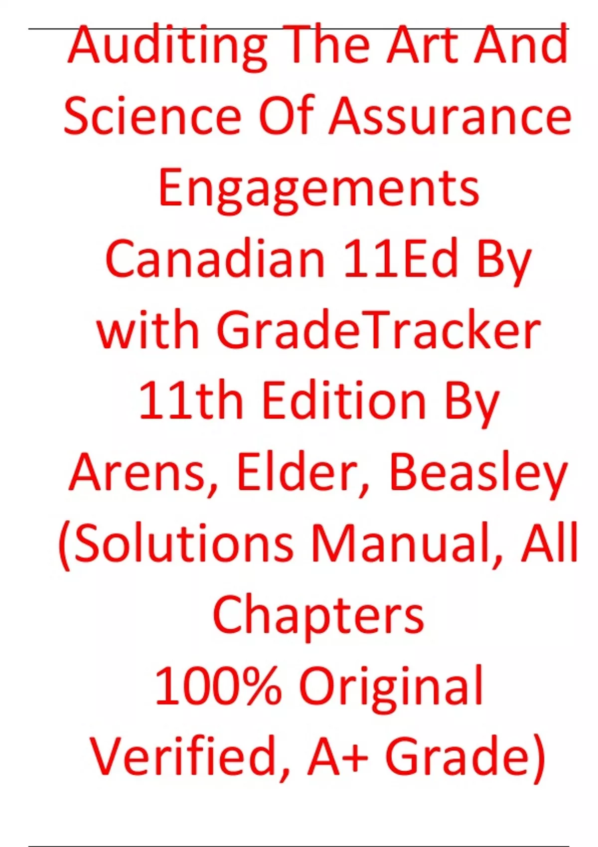 Solutions Manual For Auditing The Art And Science Of Assurance Engagements Canadian 11th Ed with GradeTracker 11th Edition By Arens, Elder, Beasley Solutions Manual For Auditing The Art And Science Of Assurance Engagements Canadian 11th Ed with GradeTracker 11th Edition By Arens, Elder, Beasley Solutions Manual For Auditing The Art And Science Of Assurance Engagements Canadian 11th Ed with GradeTracker 11th Edition By Arens, Elder, Beasley