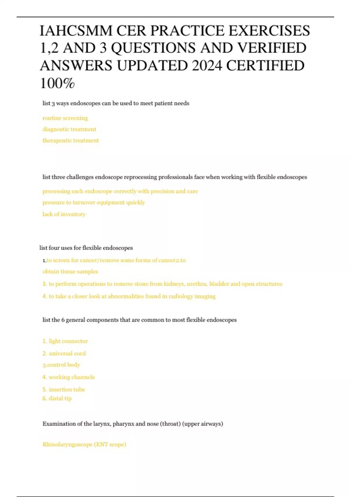 IAHCSMM CER PRACTICE EXERCISES 1,2 AND 3 QUESTIONS AND VERIFIED ANSWERS UPDATED 2024 CERTIFIED 100%