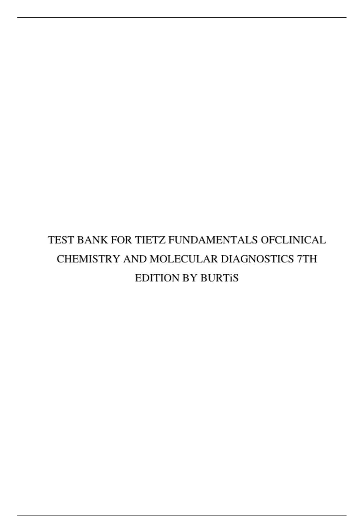 TEST BANK FOR TIETZ FUNDAMENTALS OF CLINICAL CHEMISTRY AND MOLECULAR DIAGNOSTICS 7TH EDITION BY BURTiS 100% Verified