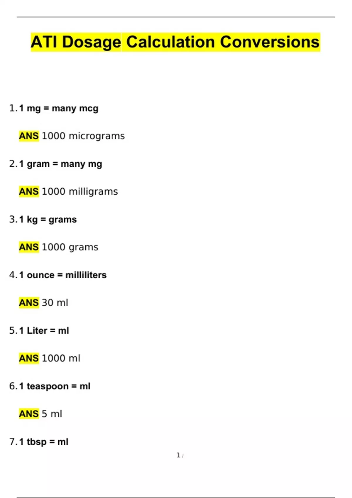 ATI Dosage Calculation Conversions (2024/2025) Newest Questions and Answers (Verified Answers)