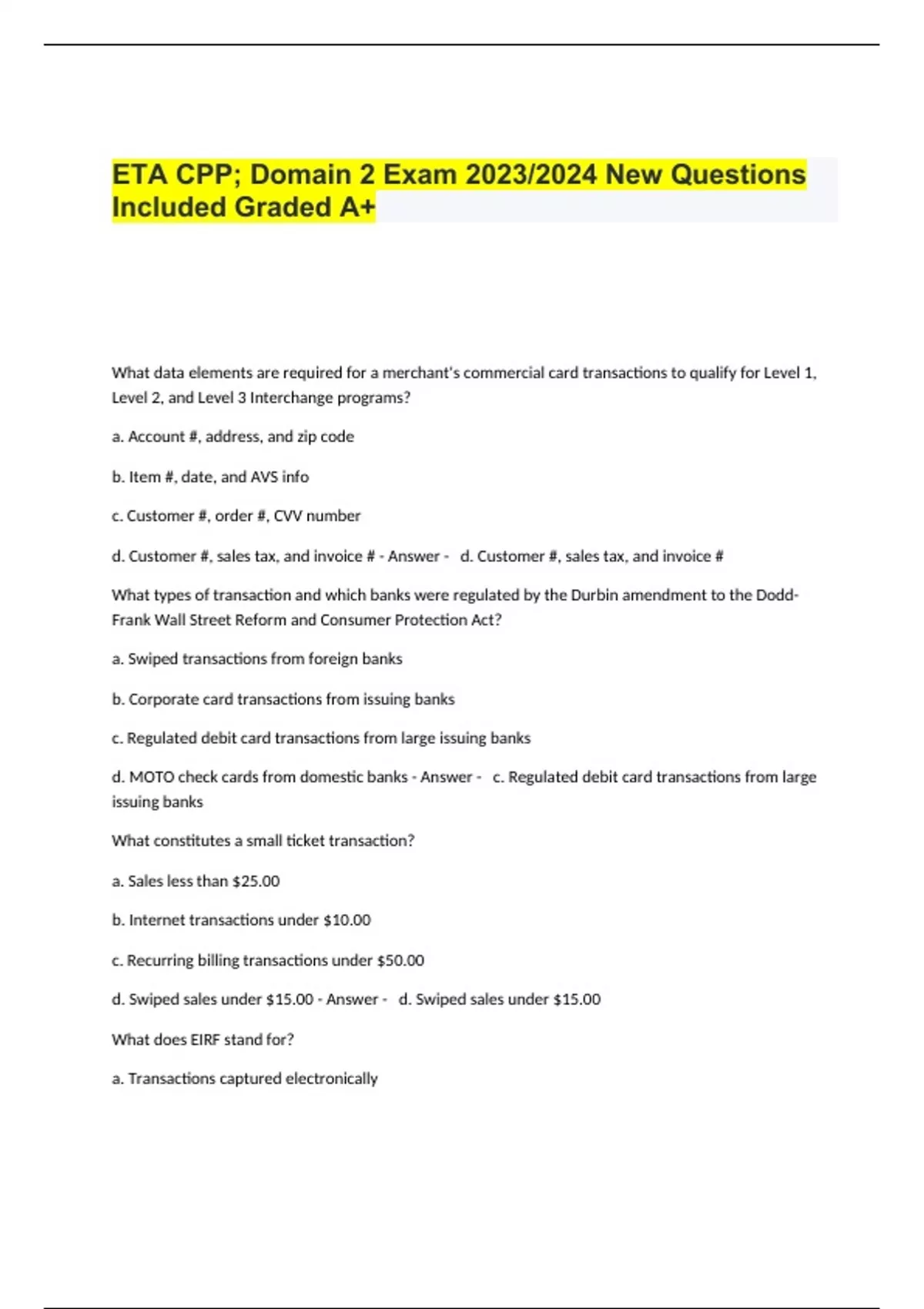 ETA CPP Domain 2 Exam New Questions Included Graded A+.