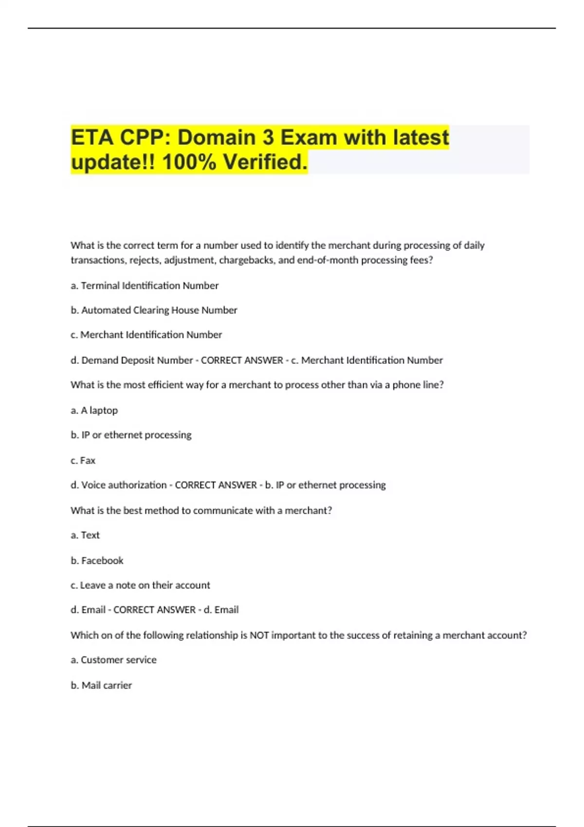 ETA CPP Domain 3 Exam with latest update!! 100% Verified.