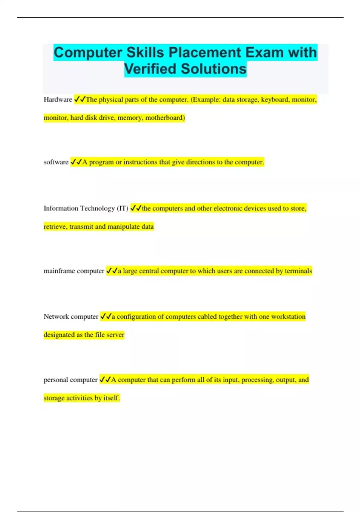 Hardware The physical parts of the computer. (Example: data storage, keyboard, monitor, monitor, hard disk drive, memory, motherboard) software A program or instructions that give directions to the computer. Information Technology (IT) the computers and other electronic devices used to store, retrieve, transmit and manipulate data mainframe computer a large central computer to which users are connected by terminals Network computer a configuration of computers cabled together with one workstation designated as the file server personal computer A computer that can perform all of its input, processing, output, and storage activities by p a computer that is portable and suitable f