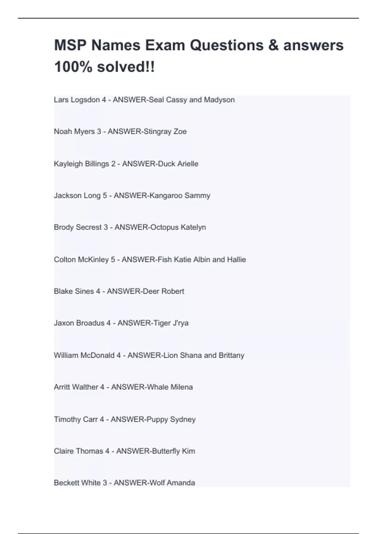 MSP Names Exam Questions & answers 100% solved!!