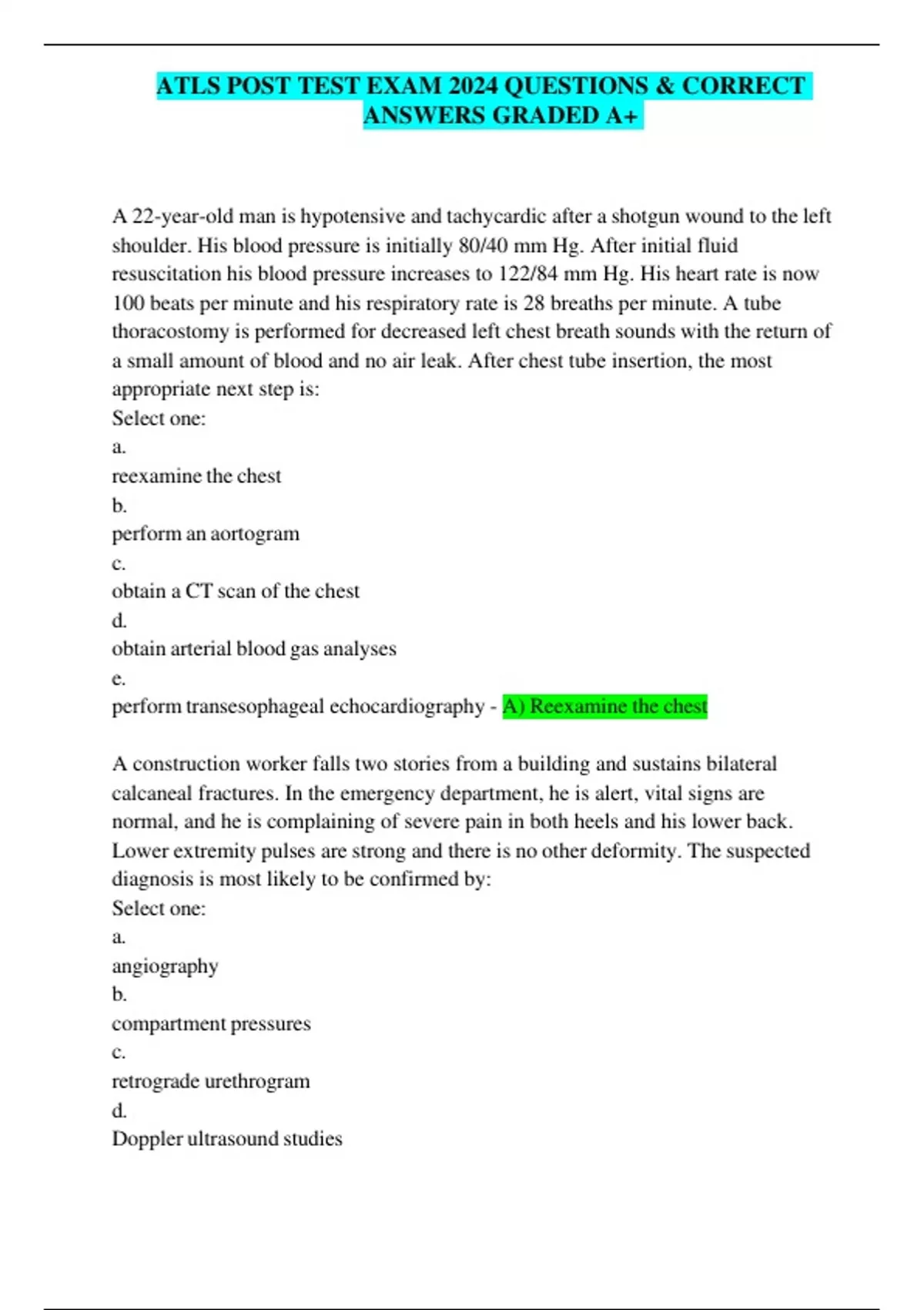 ATLS POST TEST EXAM 2024 QUESTIONS & CORRECT ANSWERS GRADED A+ ATLS POST TEST EXAM 2024 QUESTIONS & CORRECT ANSWERS GRADED A+