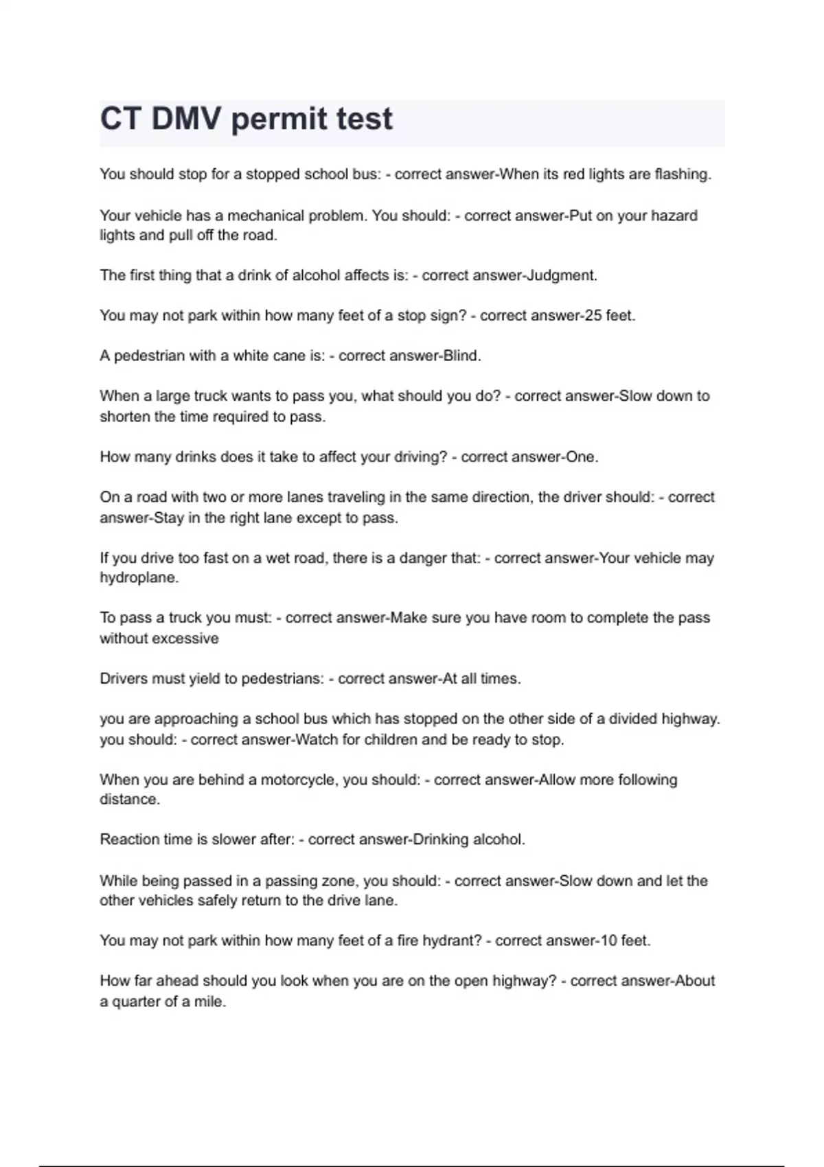 CT DMV permit test.
