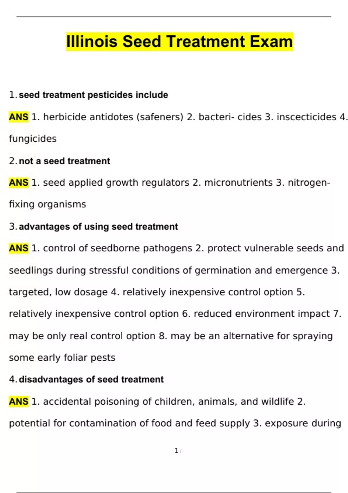 Illinois Seed Treatment Exam 2026/2027 Newest Questions and Answers (Verified Answers)