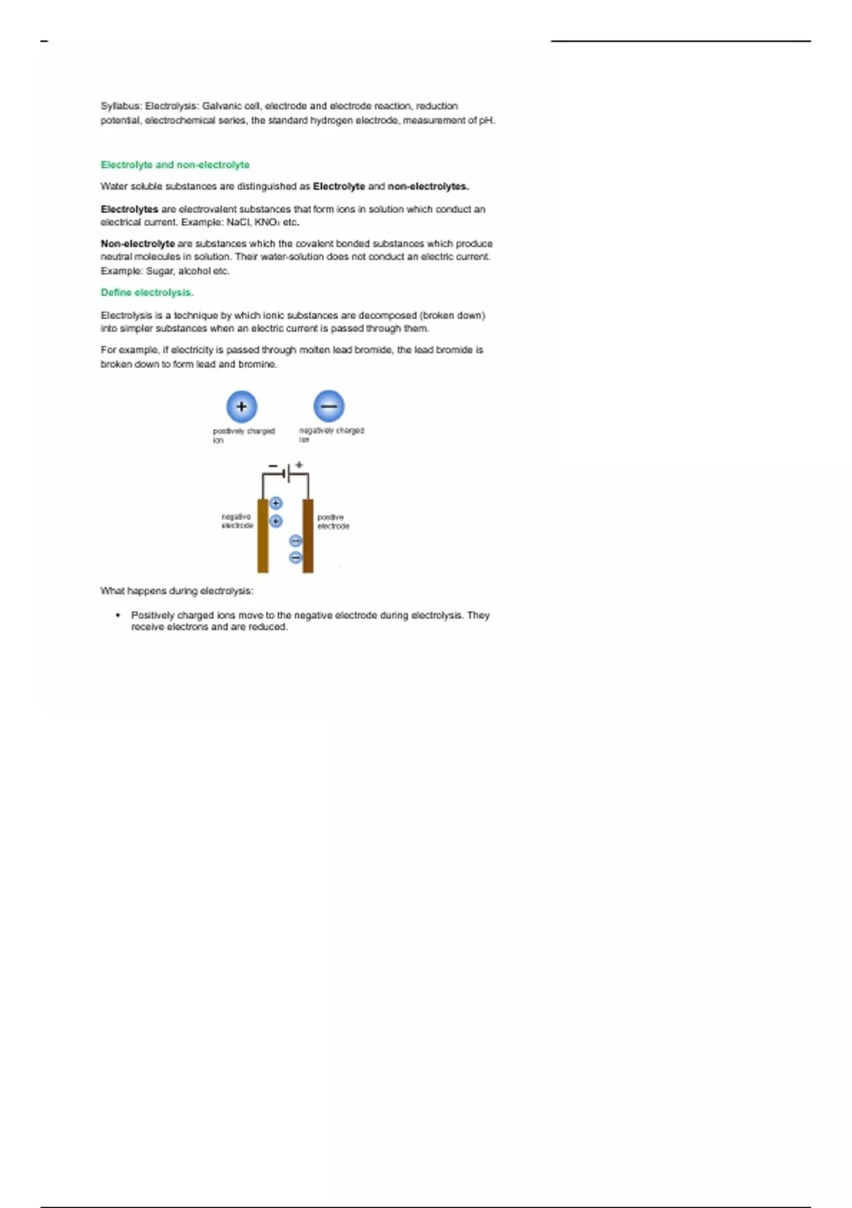 Syllabus: Electrolysis: Galvanic cell, electrode and electrode reaction, reduction