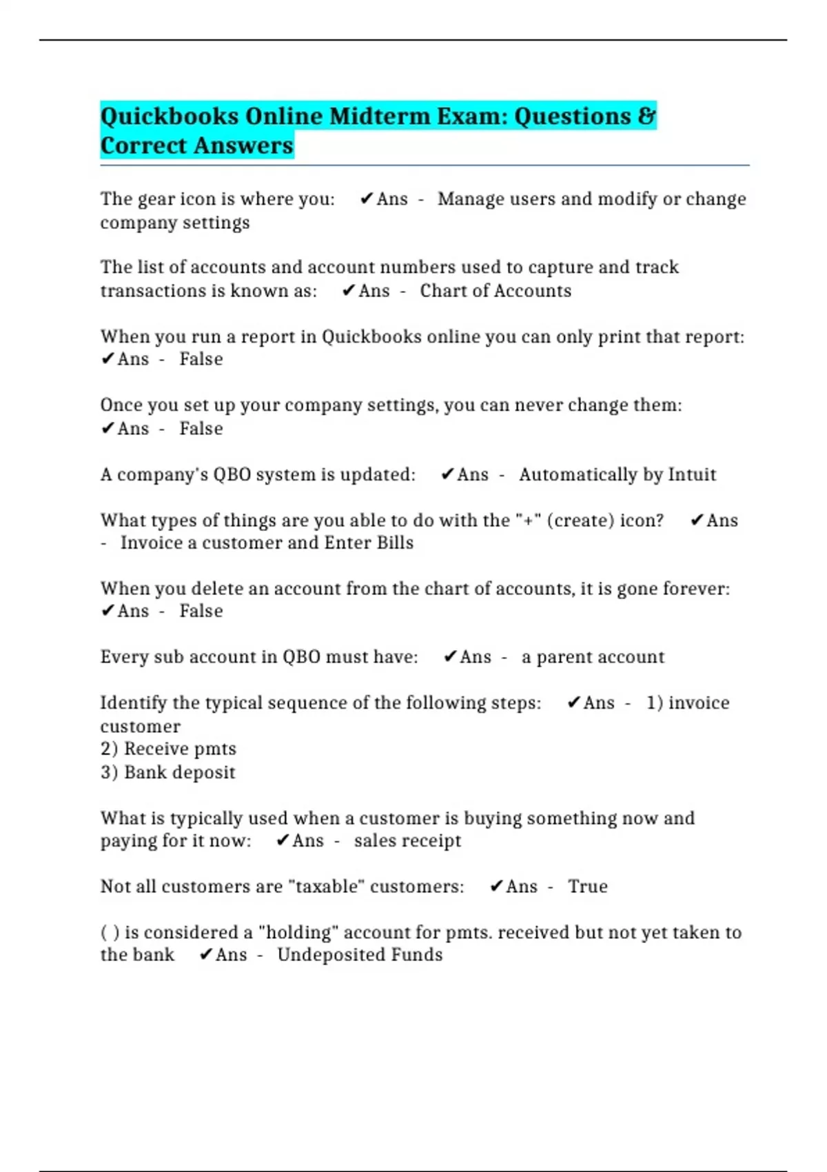 Quickbooks Online Midterm Exam: Questions & Correct Answers