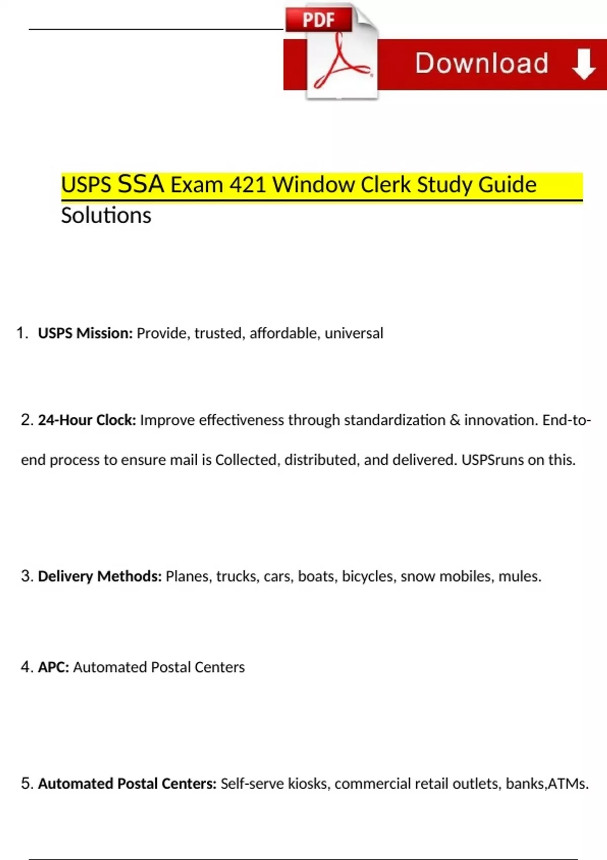 USPS SSA Exam 421 Window Clerk Study Guide Test Solutions (2024 / 2025) 100% Verified Guarantee Pass