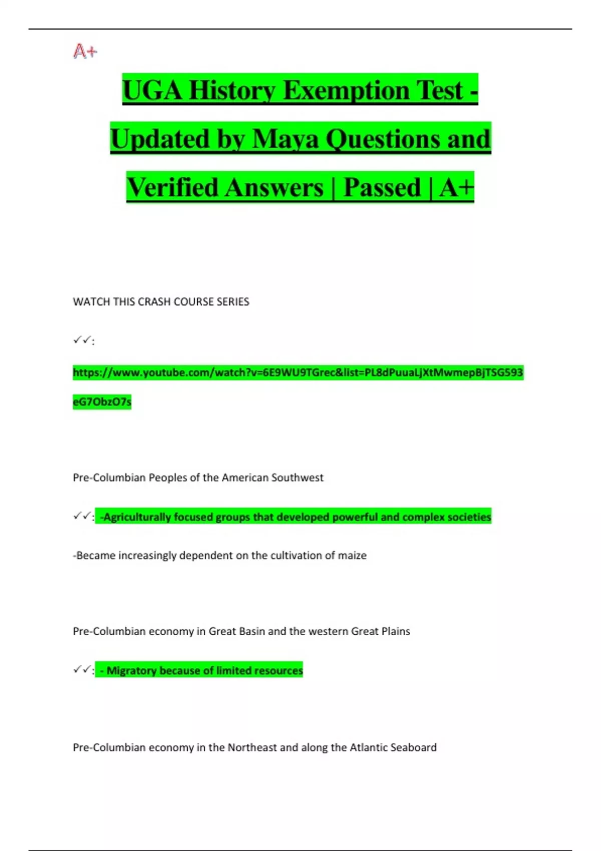 UGA History Exemption Test - Updated by Maya Questions and Verified Answers | Passed | A+