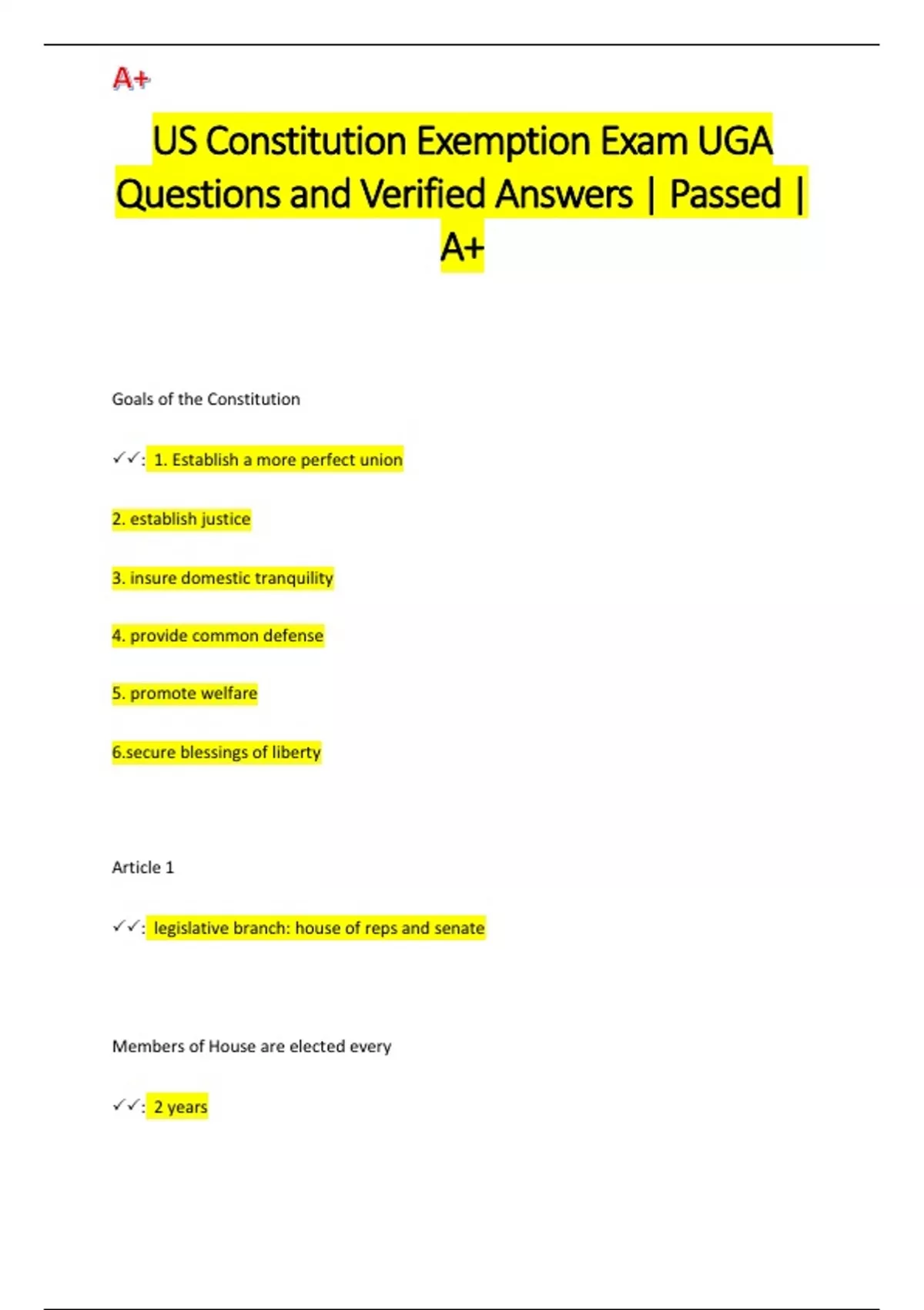 US Constitution Exemption Exam UGA Questions and Verified Answers | Passed | A+