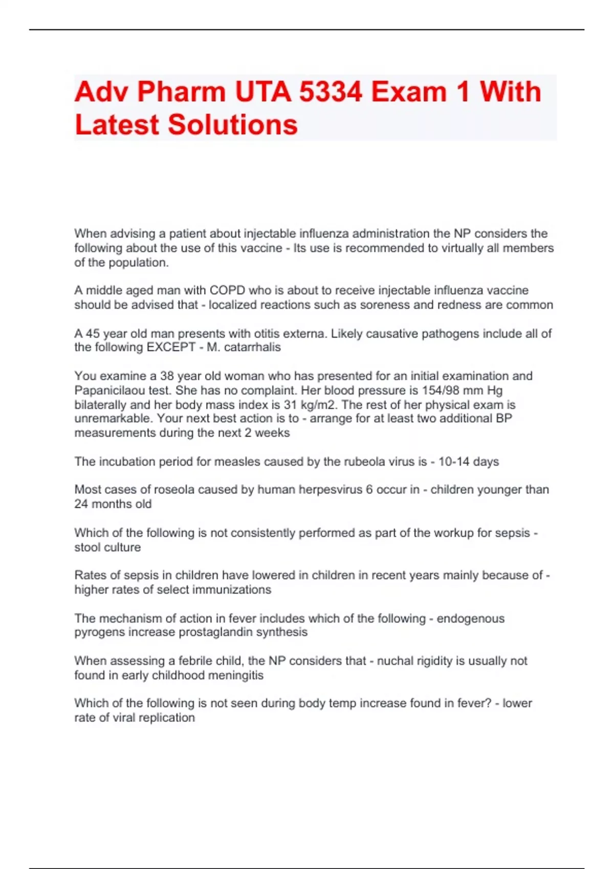 Adv Pharm UTA 5334 Exam 1 With Latest Solutions