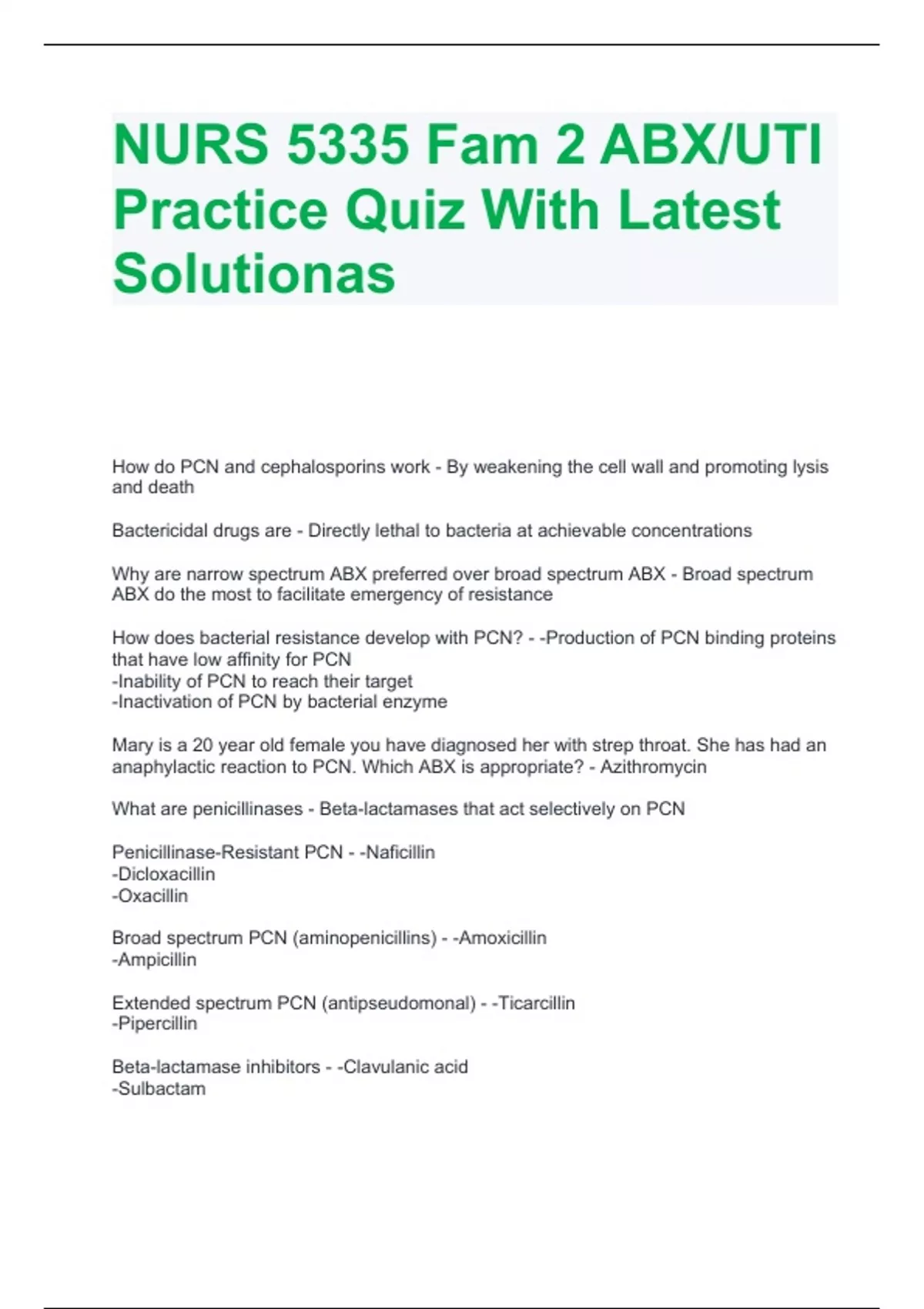 NURS 5335 Fam 2 ABX/UTI Practice Quiz With Latest Solutionas