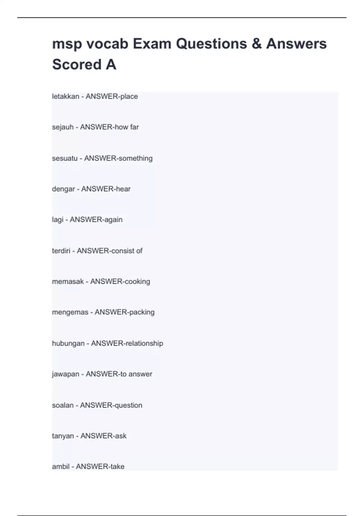 msp vocab exam questions answers scored a