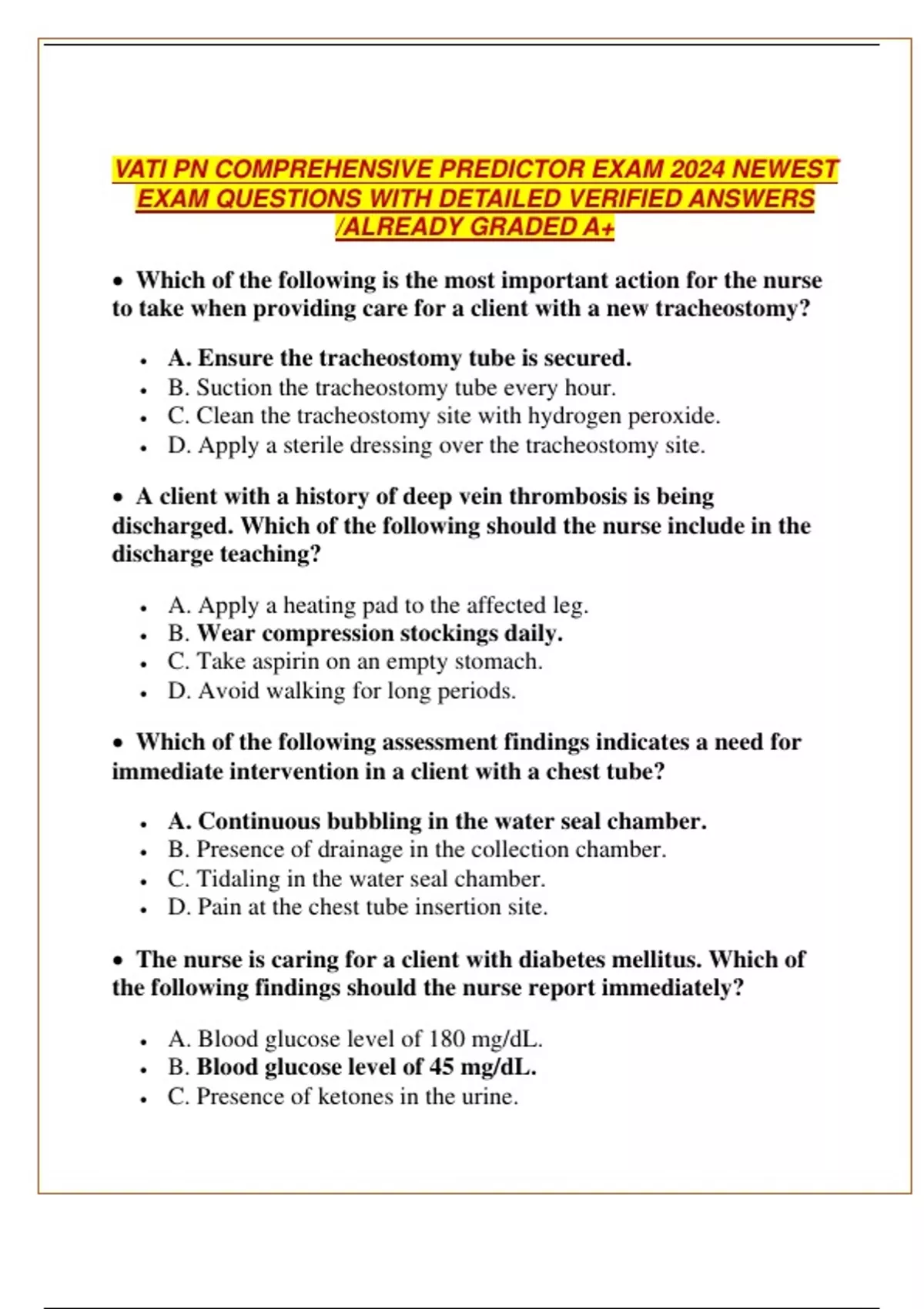 VATI PN COMPREHENSIVE PREDICTOR EXAM 2024 NEWEST EXAM QUESTIONS WITH DETAILED VERIFIED ANSWERS /ALREADY GRADED A+