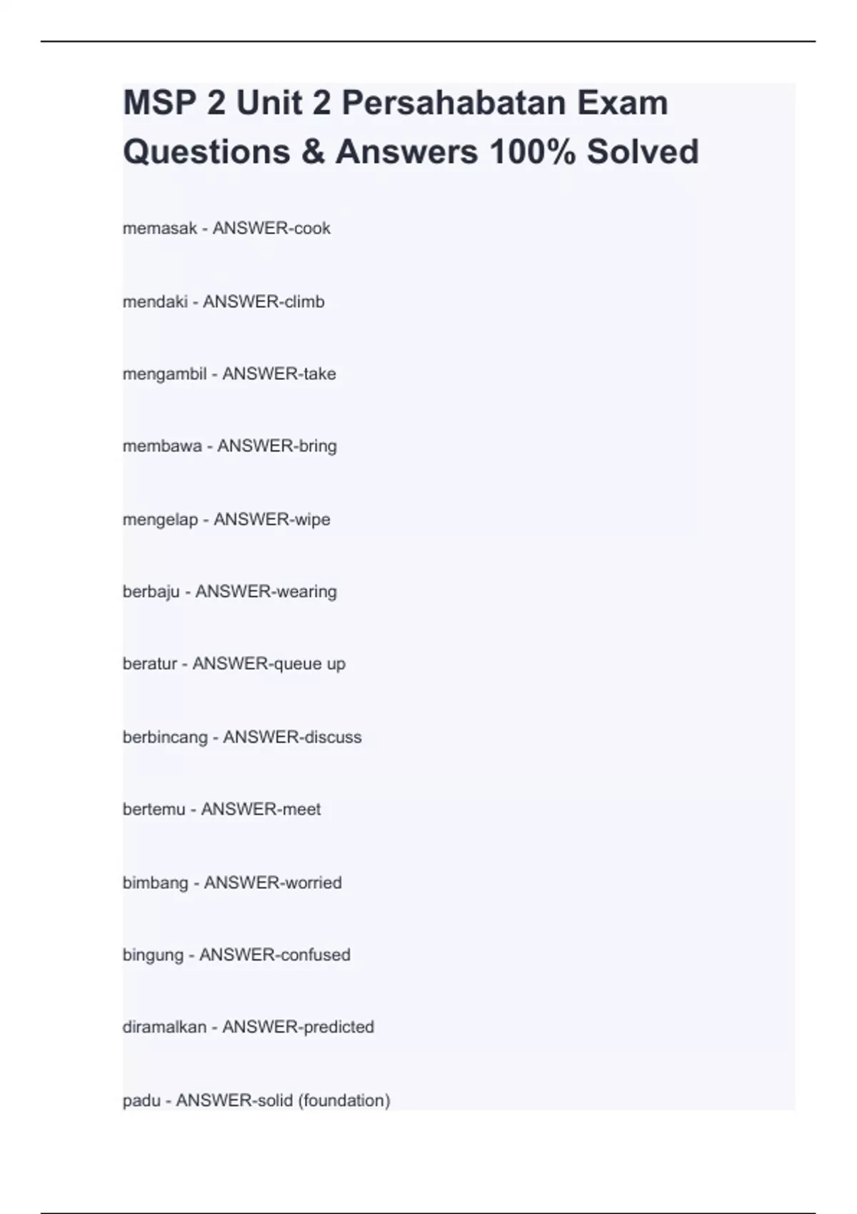 MSP 2 Unit 2 Persahabatan Exam Questions & Answers 100% Solved