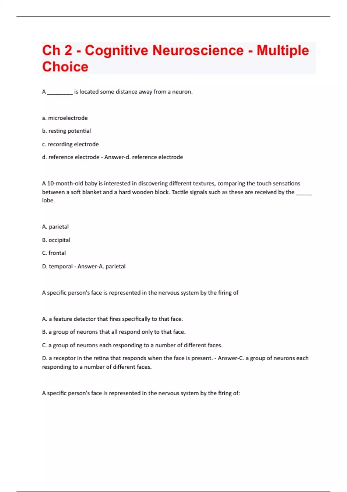 Ch 2 - Cognitive Neuroscience - Multiple Choice Questions With Correct Answers!!