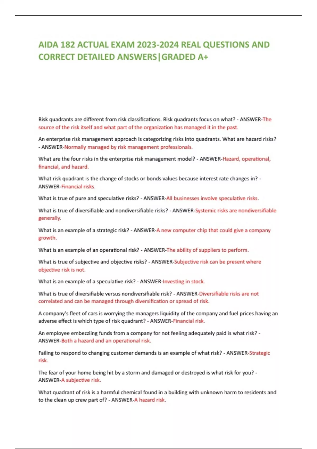 AIDA 182 ACTUAL EXAM REAL QUESTIONS AND CORRECT DETAILED ANSWERS|GRADED A+