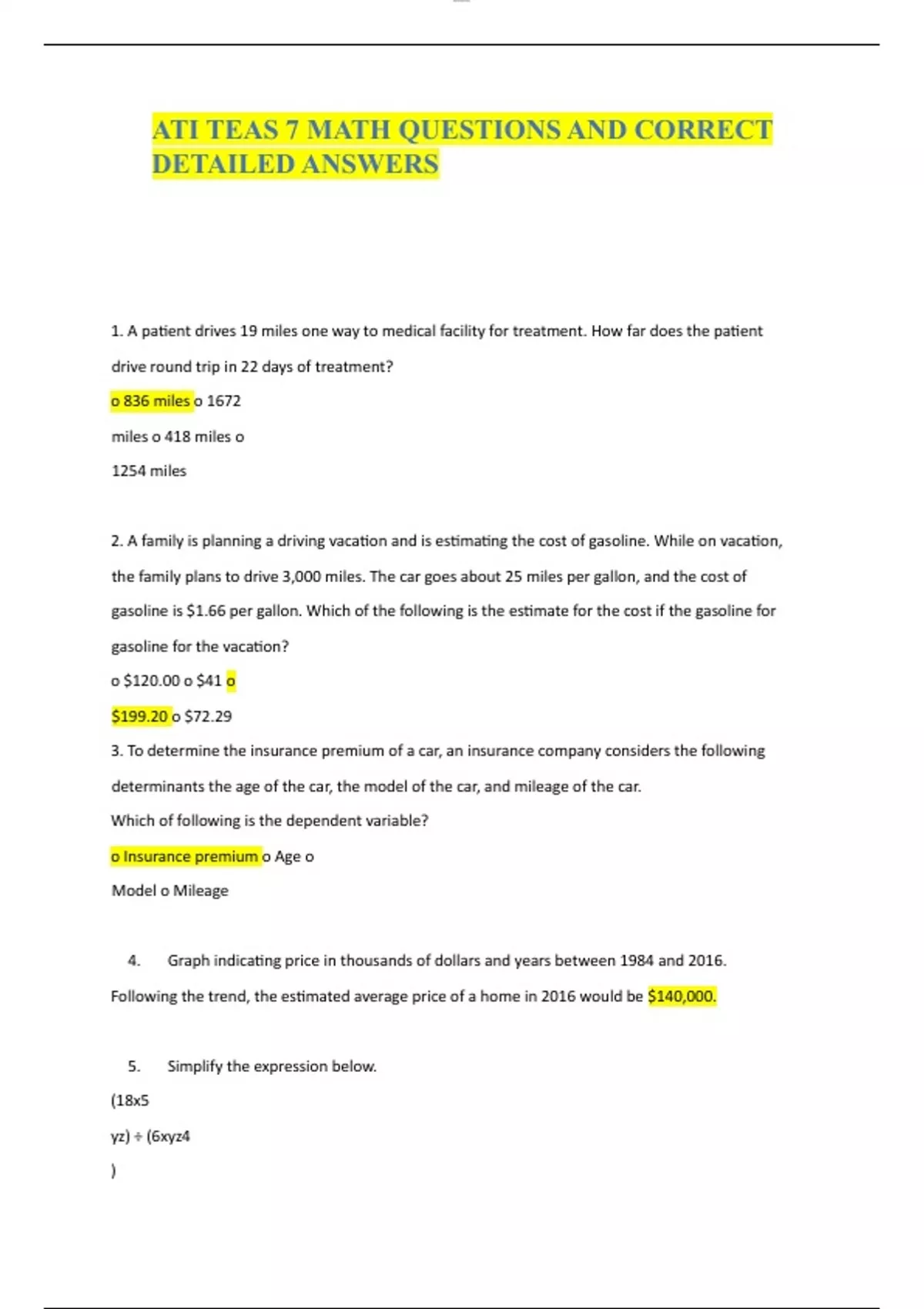 ATI TEAS 7 MATH QUESTIONS AND CORRECT DETAILED ANSWERS