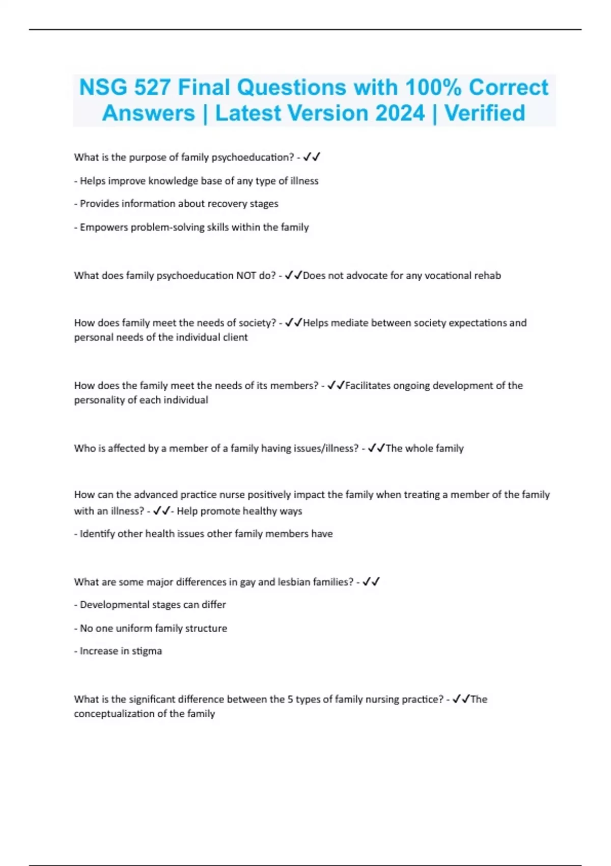NSG 527 Final Questions with 100% Correct Answers | Latest Version 2024 | Verified