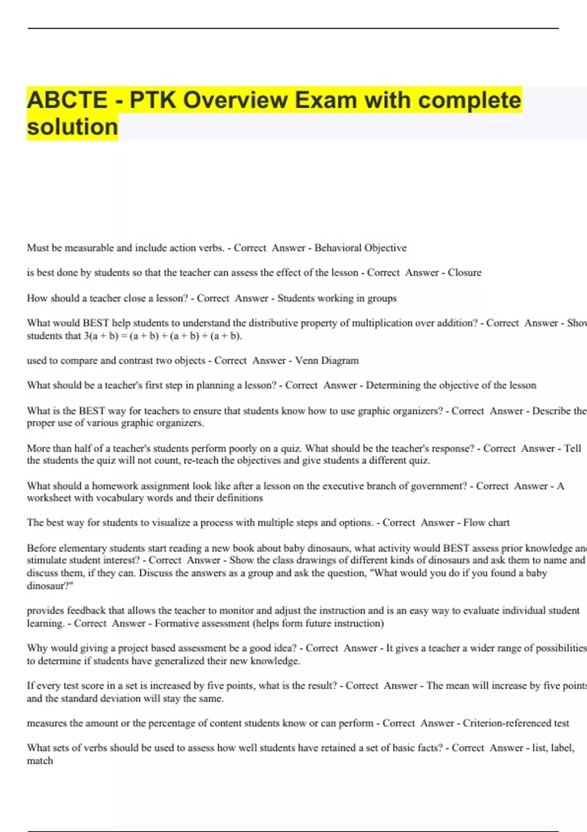 ABCTE - PTK Overview Exam with complete solution.