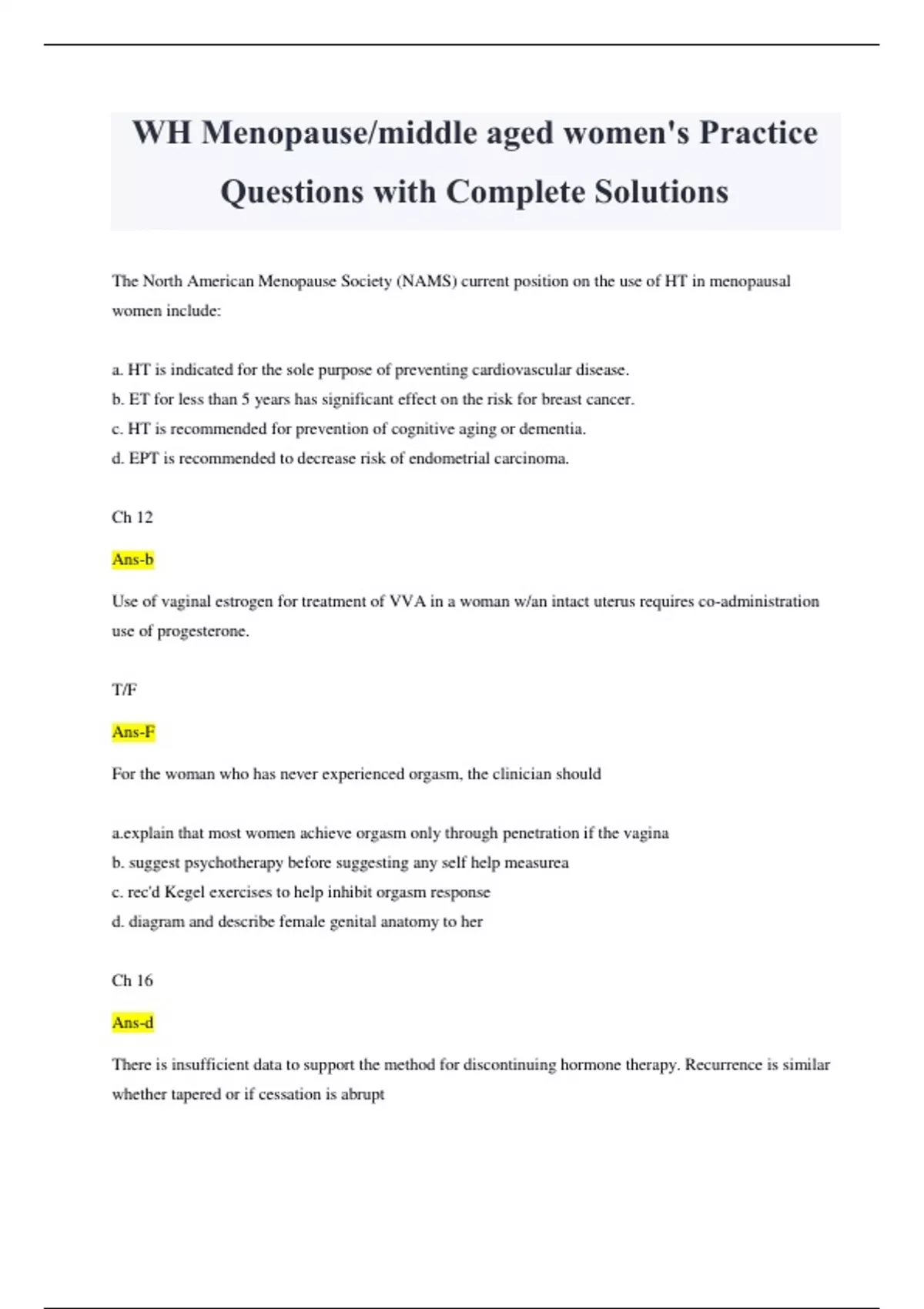 WH Menopause_middle aged women's 2024 Practice Questions with Complete Solutions