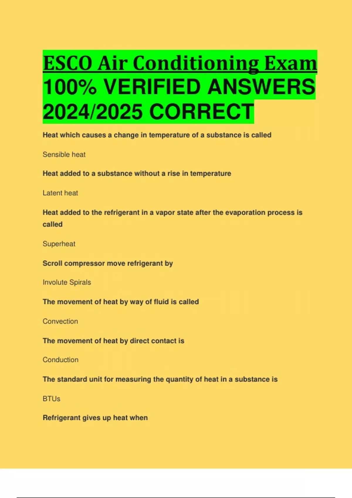 BEST ANSWERS ESCO Air Conditioning Exam 100% VERIFIED ANSWERS 2024/2025 CORRECT