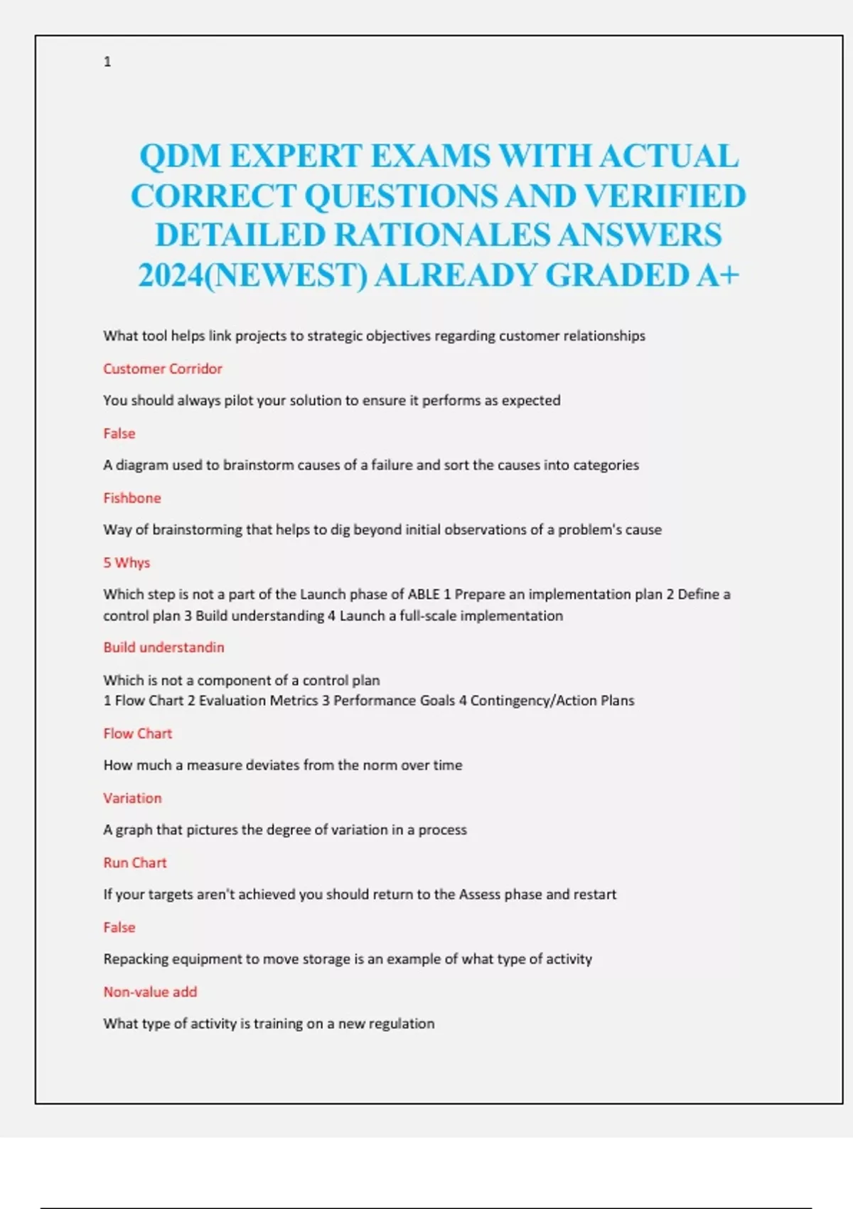 qdm expert exams with actual correct questions an
