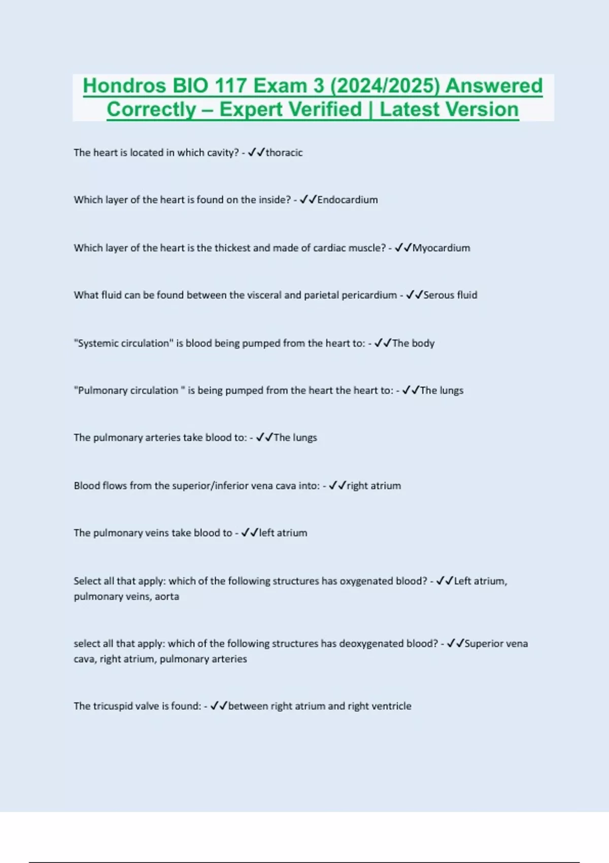 Hondros BIO 117 Exam 3 (2024/2025) Answered Correctly – Expert Verified | Latest Version