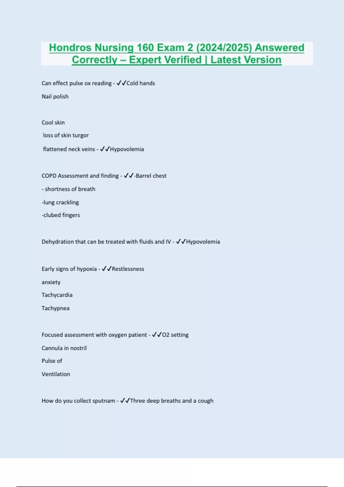 Hondros Nursing 160 Exam 2 (2024/2025) Answered Correctly – Expert Verified | Latest Version
