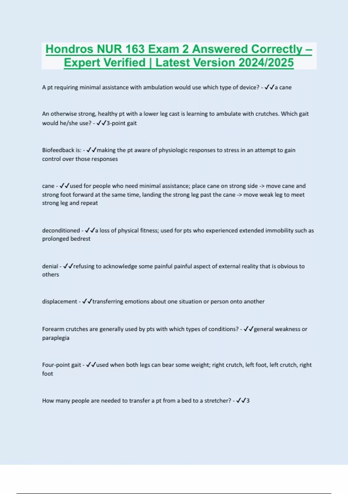 Hondros NUR 163 Exam 2 Answered Correctly – Expert Verified | Latest Version 2024/2025