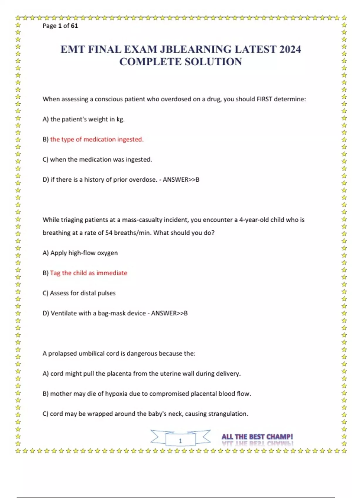 EMT MIDTERM&FINAL EXAM JB LEARNING QUESTIONS WITH CORRECT VERIFIED ANSWERS 10 VERSIONS