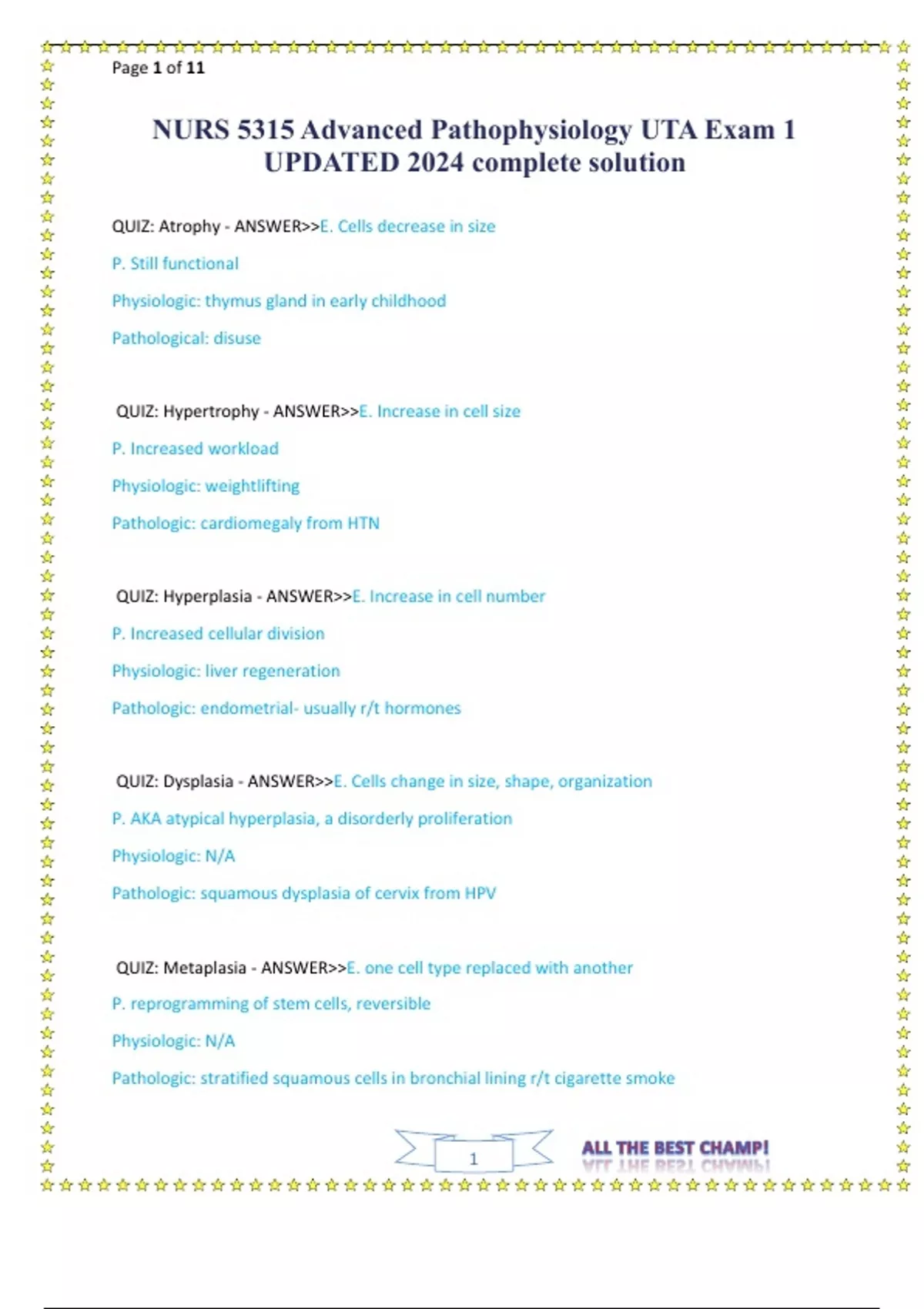 NURS 5315 Advanced Pathophysiology UTA Exam 1 UPDATED 2024 complete solution.