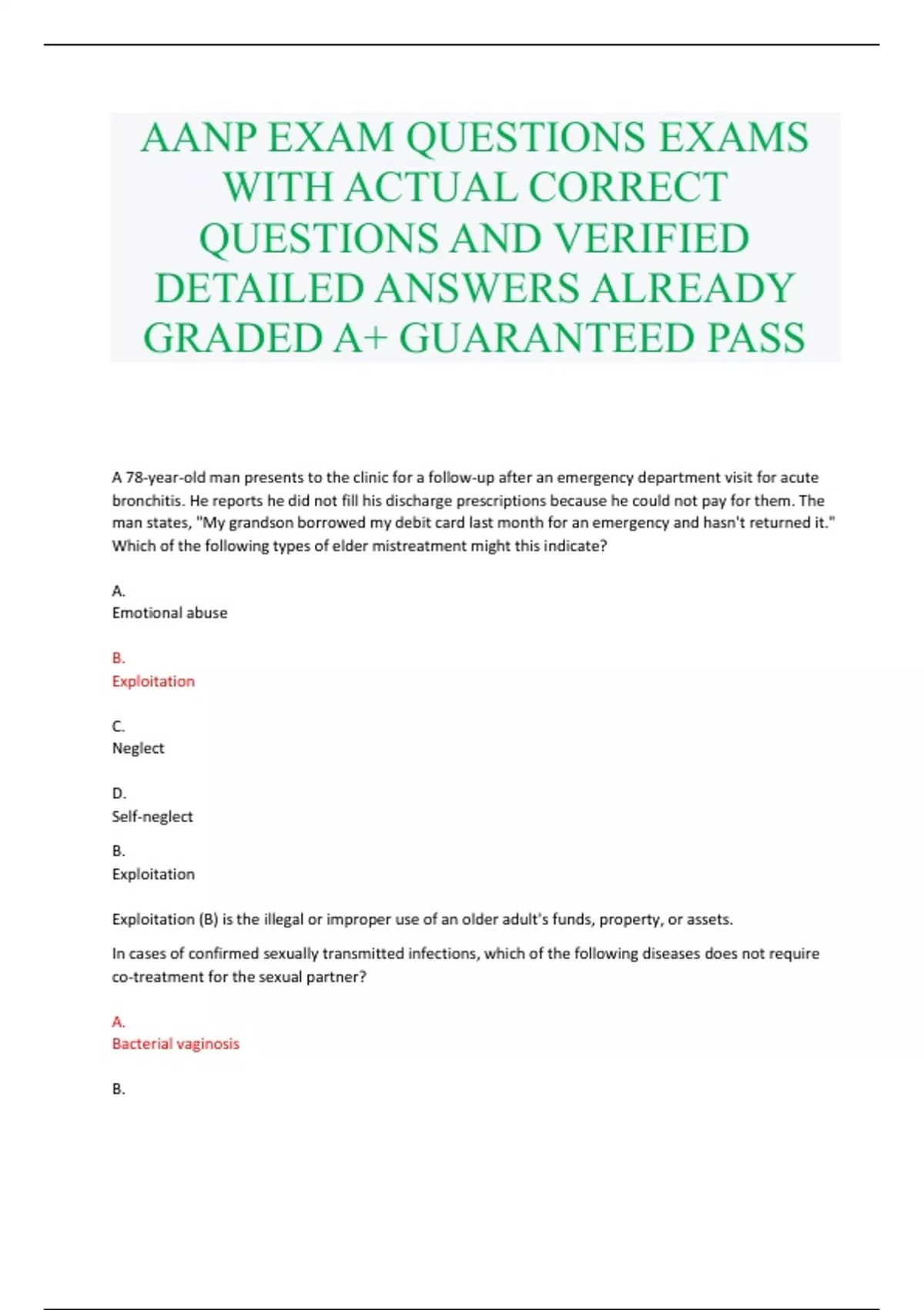 AANP EXAM QUESTIONS EXAMS WITH ACTUAL CORRECT QUESTIONS AND VERIFIED DETAILED ANSWERS ALREADY GRADED A+ GUARANTEED PASS