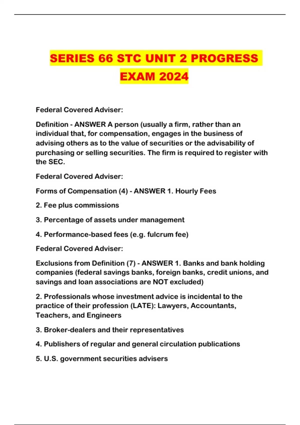 SERIES 66 STC UNIT 2 PROGRESS EXAM 2024