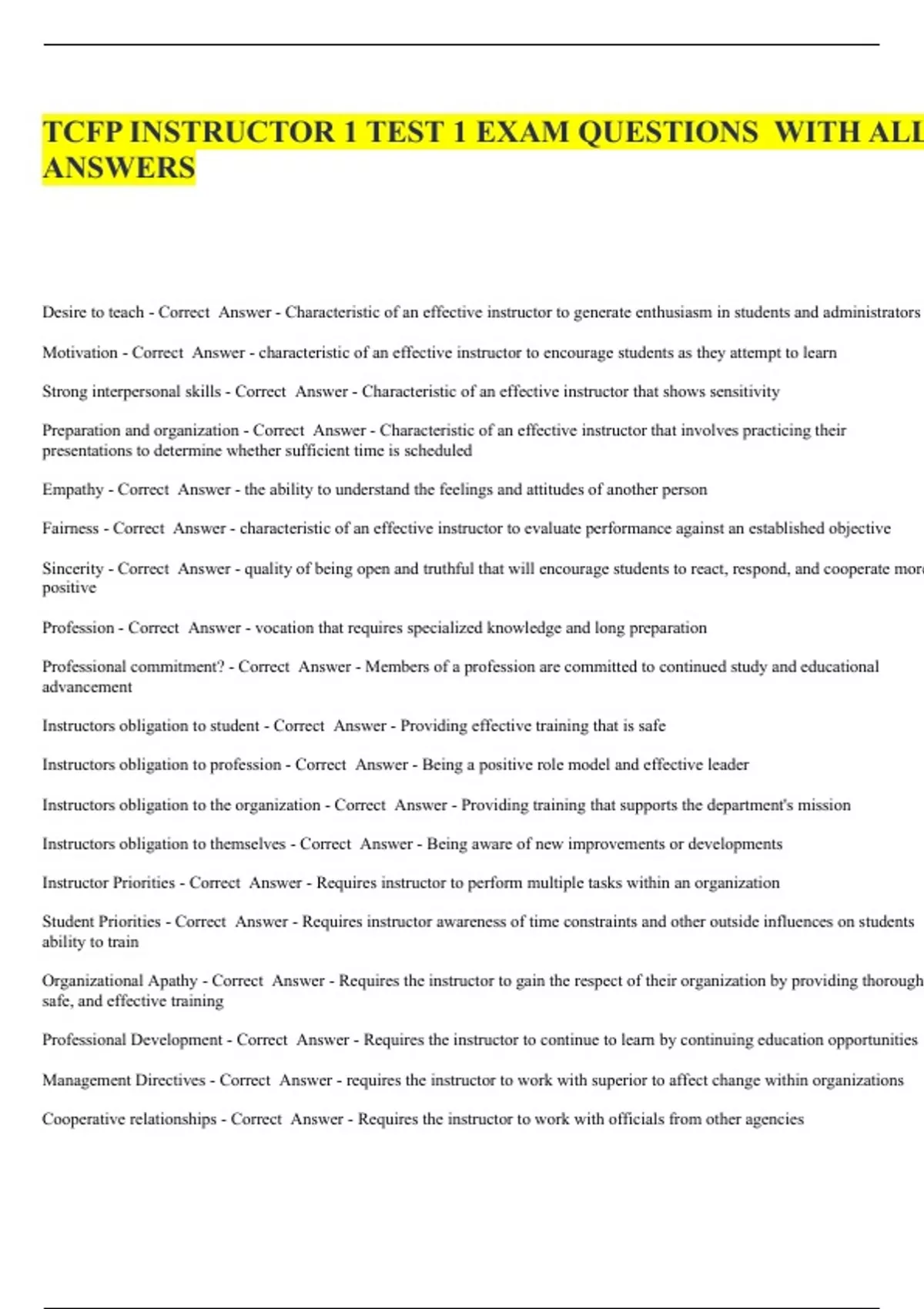 Desire to teach - Correct Answer - Characteristic of an effective instructor to generate enthusiasm in students and administrators