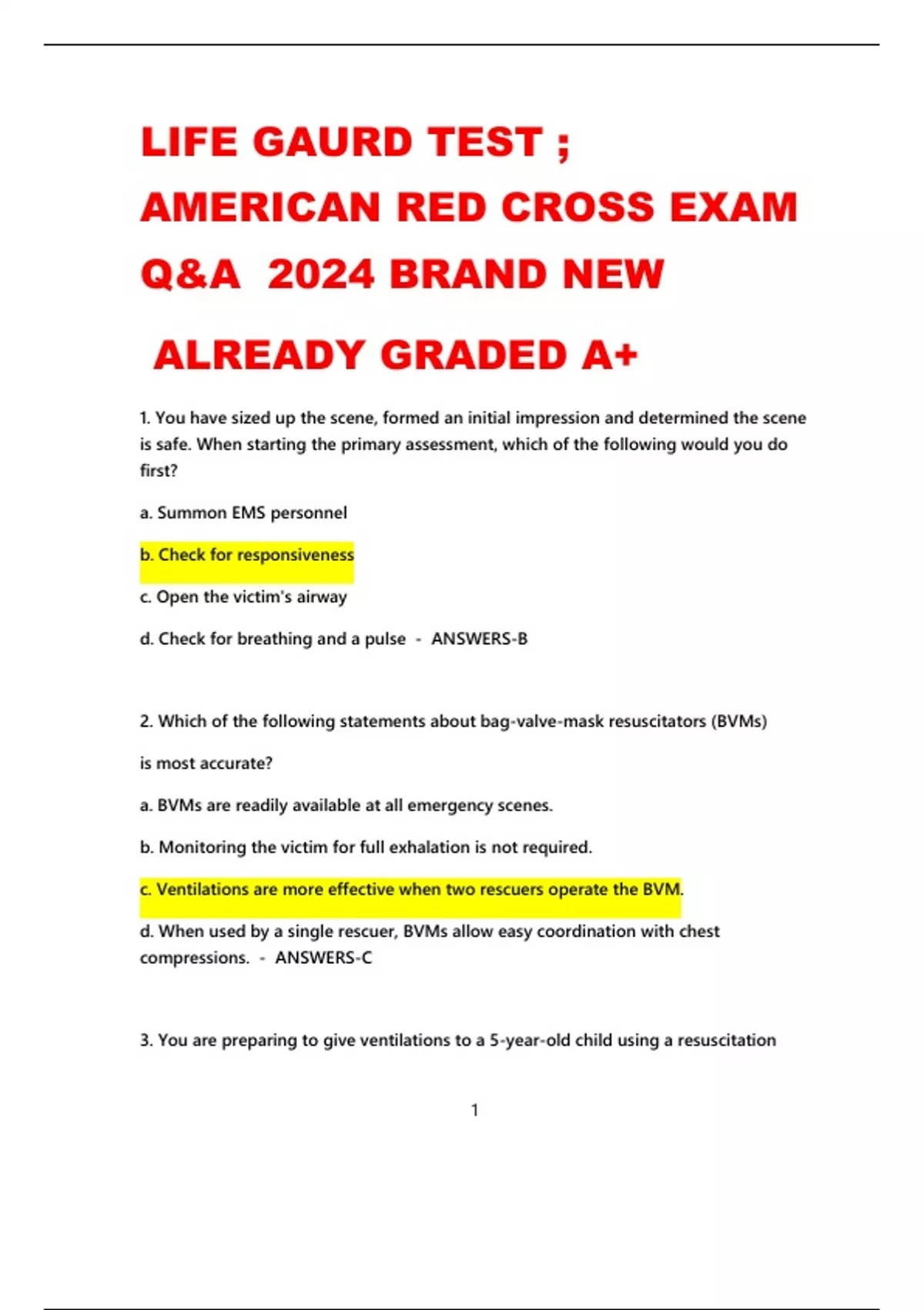 LIFE GAURD TEST ; AMERICAN RED CROSS EXAM Q&A 2024 BRAND NEW ALREADY GRADED A+ LIFE GAURD TEST ; AMERICAN RED CROSS EXAM Q&A 2024 BRAND NEW ALREADY GRADED A+ LIFE GAURD TEST ; AMERICAN RED CROSS EXAM Q&A 2024 BRAND NEW ALREADY GRADED A+